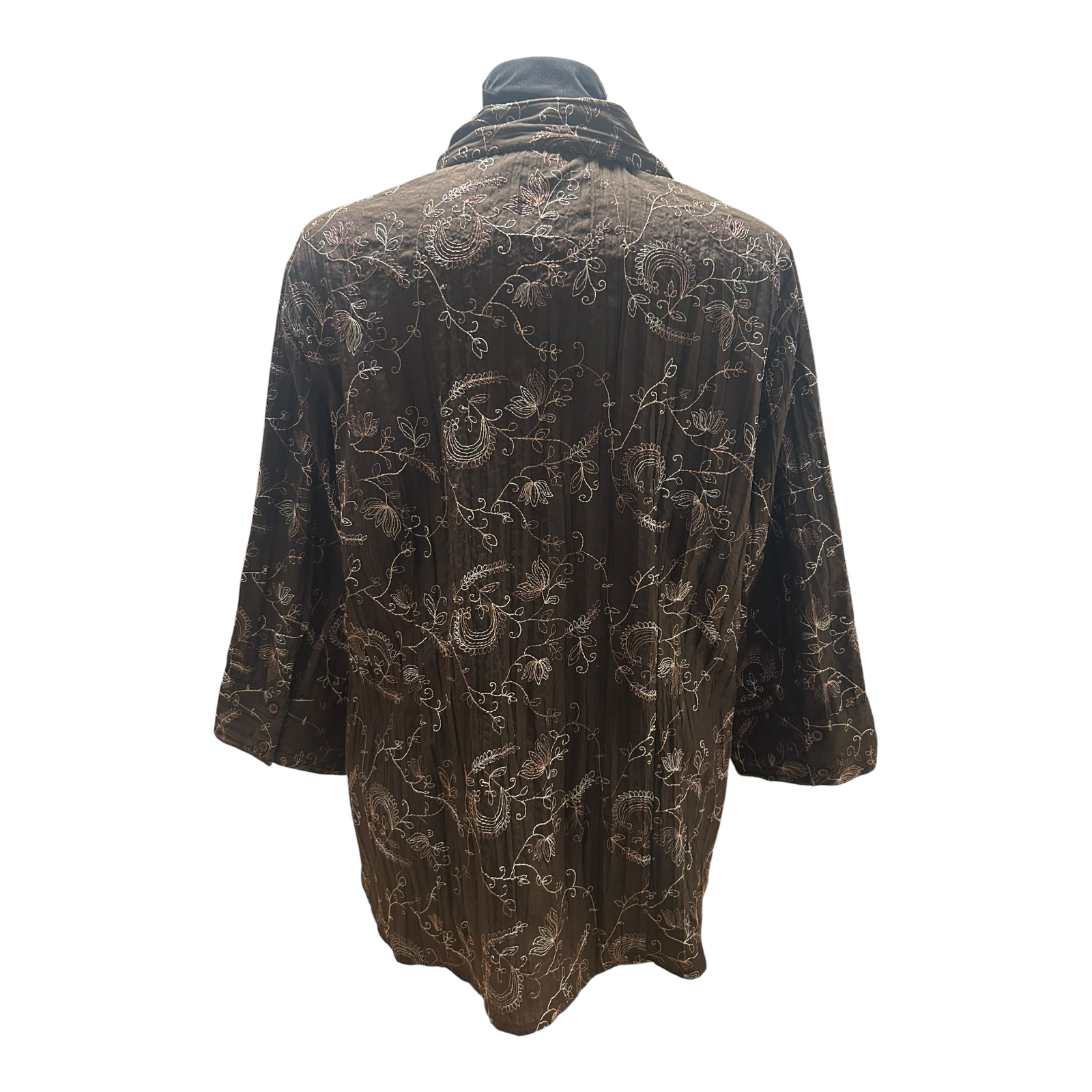 Die Brustweite beträgt 60 cm, die Länge ca. 74 cm und die Ärmellänge ca. 48 cm, es handelt sich um einen Dreiviertelarm. Vorne wird sie durch eine durchgehende Knopfleiste geschlossen. Eine unkomplizierte Bluse für viele Gelegenheiten, die sich gut kombinieren lässt. ✨