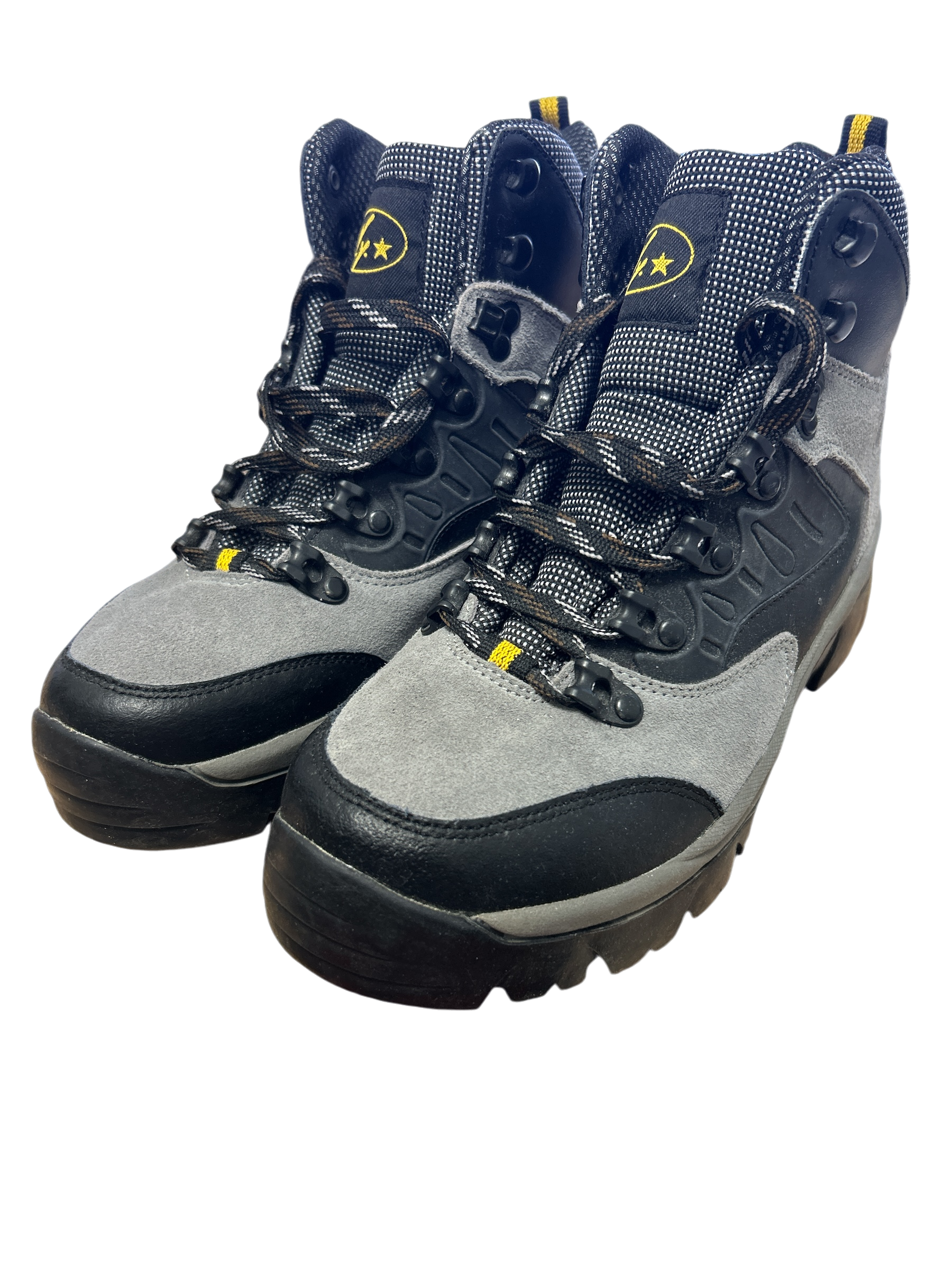 Die N.Y. Wanderstiefel für Damen/Herren in Schwarz (Größe 41) sind aus robusten Wildleder und wasserichtem Material. Die robuste Sohle sorgt für Komfort und Stabilität, ideal zum Wandern.