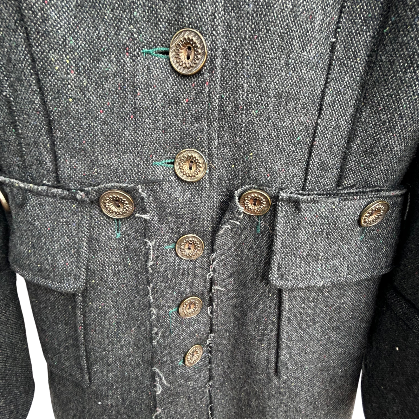 - Besonderheiten: Knopfleiste, Taschen, Strukturstoff, Rückenschlitz