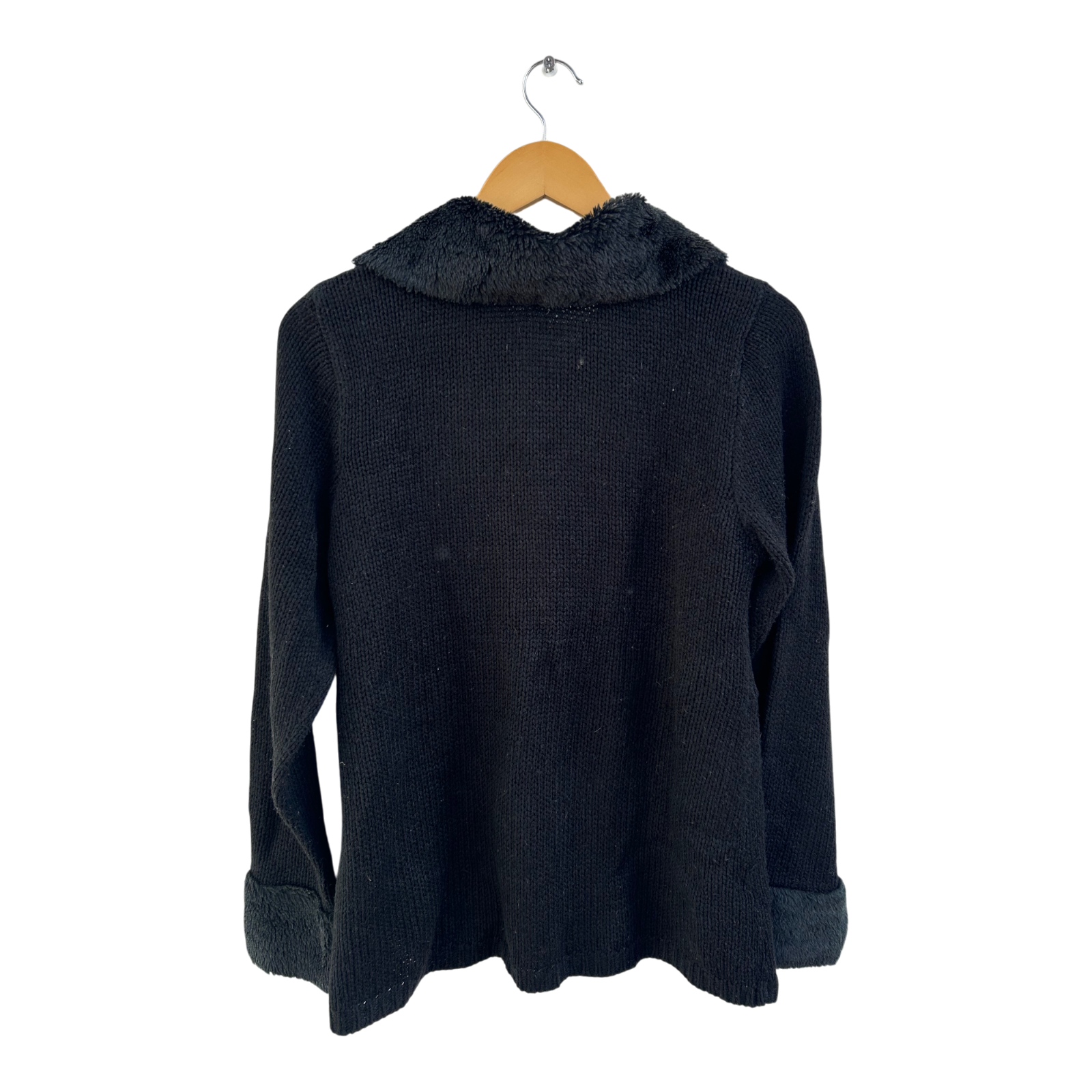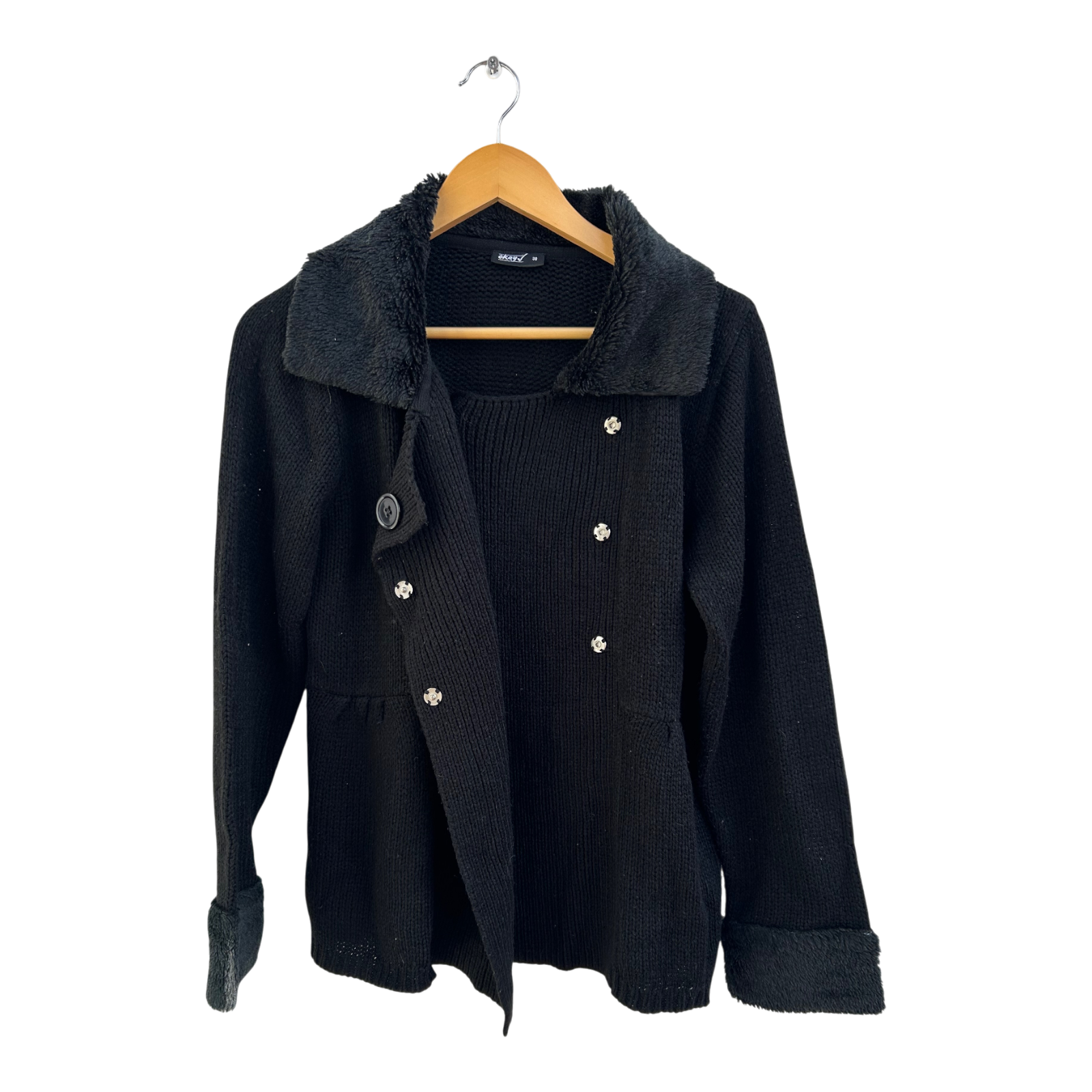 Okay Strickjacke Damen Gr 38 Schwarz Kunstfellkragen Elegant Doppelreiher Warm