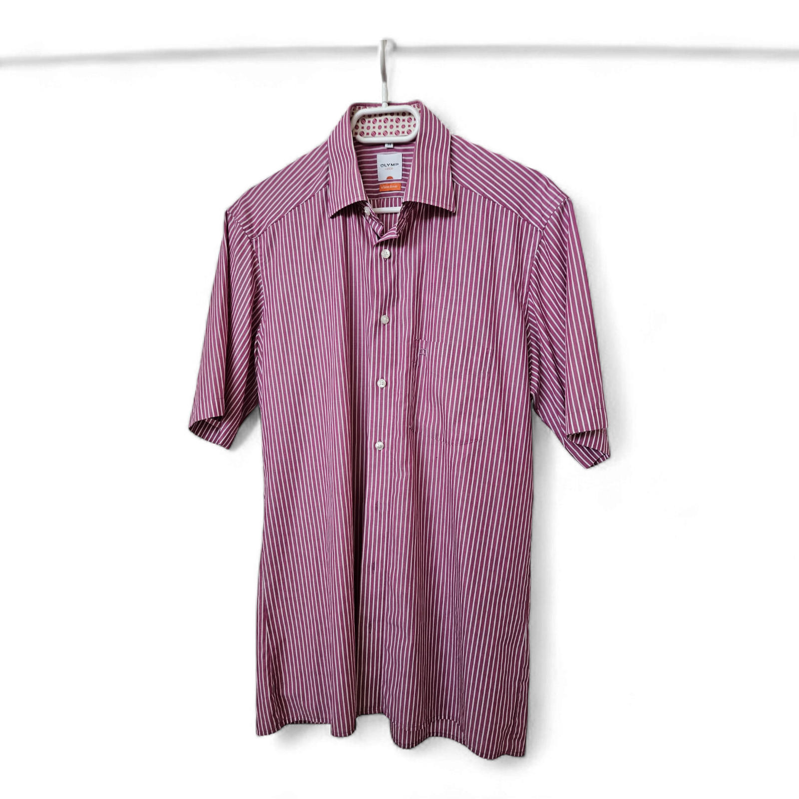 OLYMP Luxor, slim line, Kurzarmhemd, Größe 39/M, schönes Rot, weiß gestreift