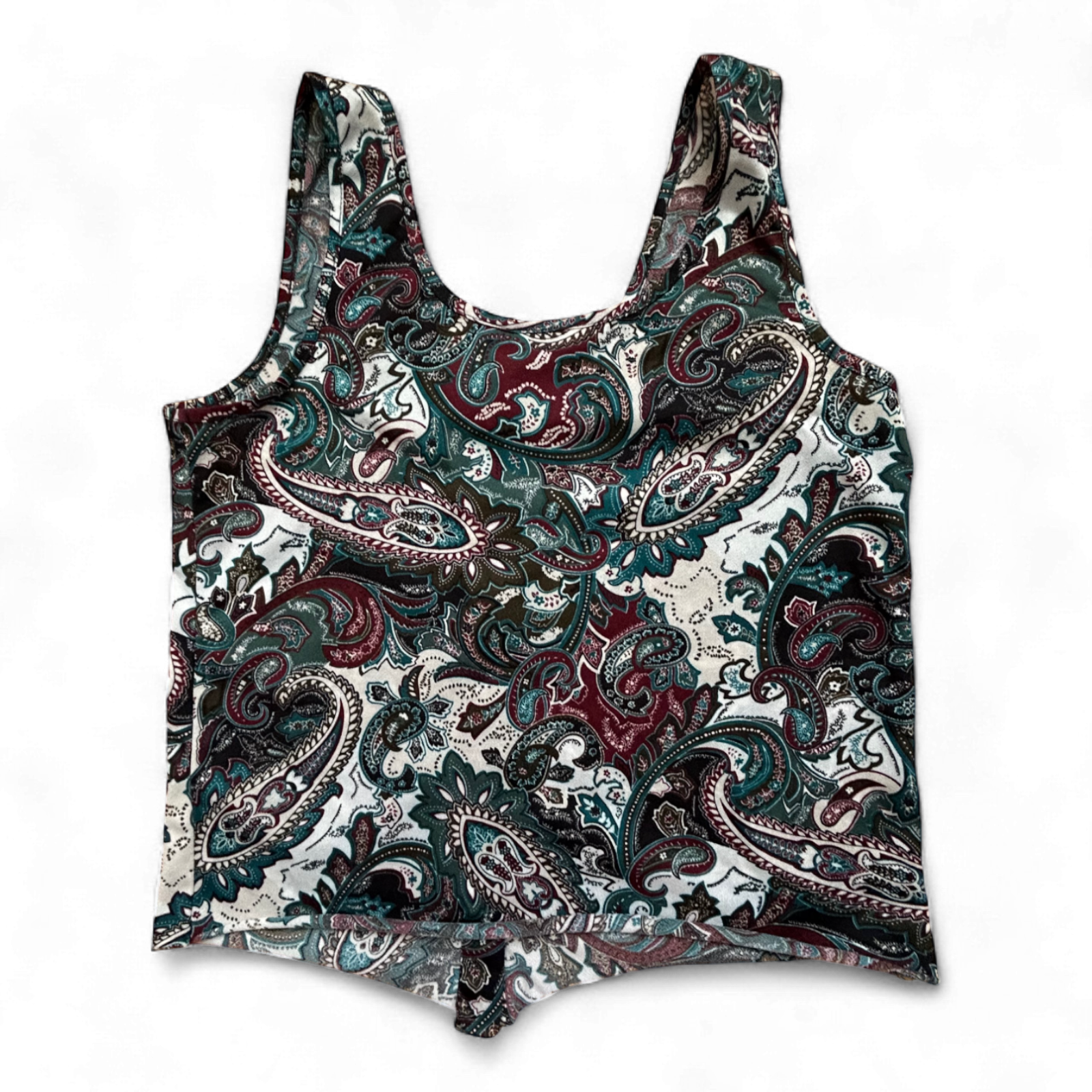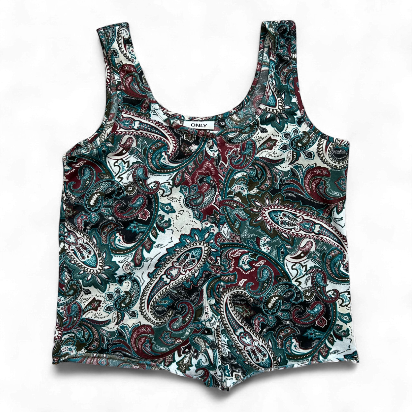 Leichtes ärmelloses Top von ONLY mit farbenfrohem Paisley-Muster in Grün, Bordeaux und Weiß. Vorne mit durchgehender Knopfleiste, figurbetonter Schnitt und angenehm leicht zu tragen – perfekt für heiße Tage! 💚☀️