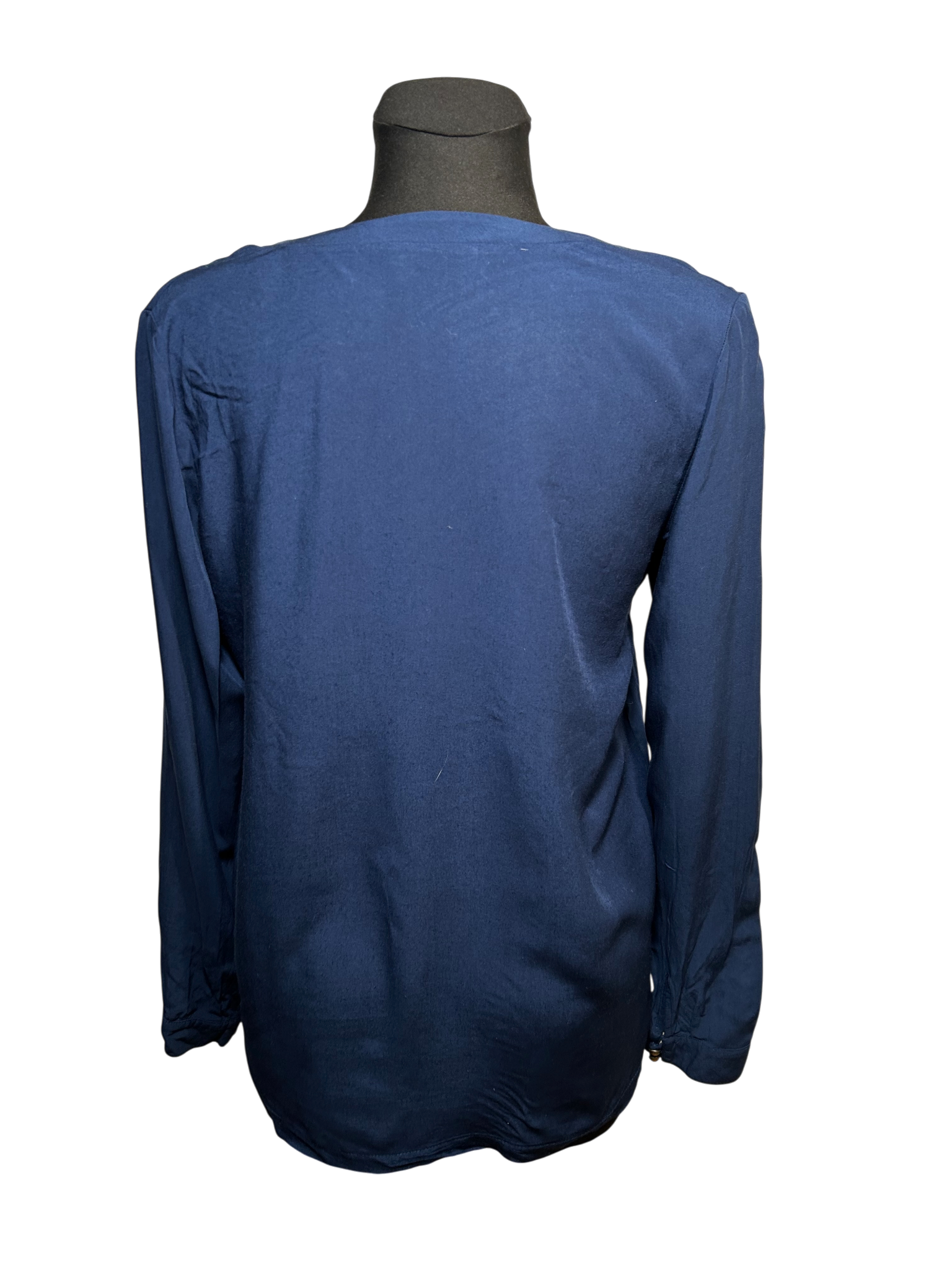 Die Bluse fällt locker und schmeichelt der Figur – ideal für Büro, Freizeit und wärmere Tage 💙. Maße: Brustweite ca. 50 cm, Armlänge ca. 62 cm, Länge ca. 70 cm.