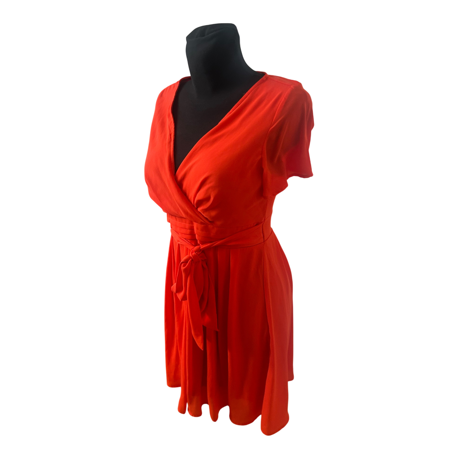 Orsay Damen Kleid Gr 36 Orange Wickeloptik Kurzarm Sommer Elegant