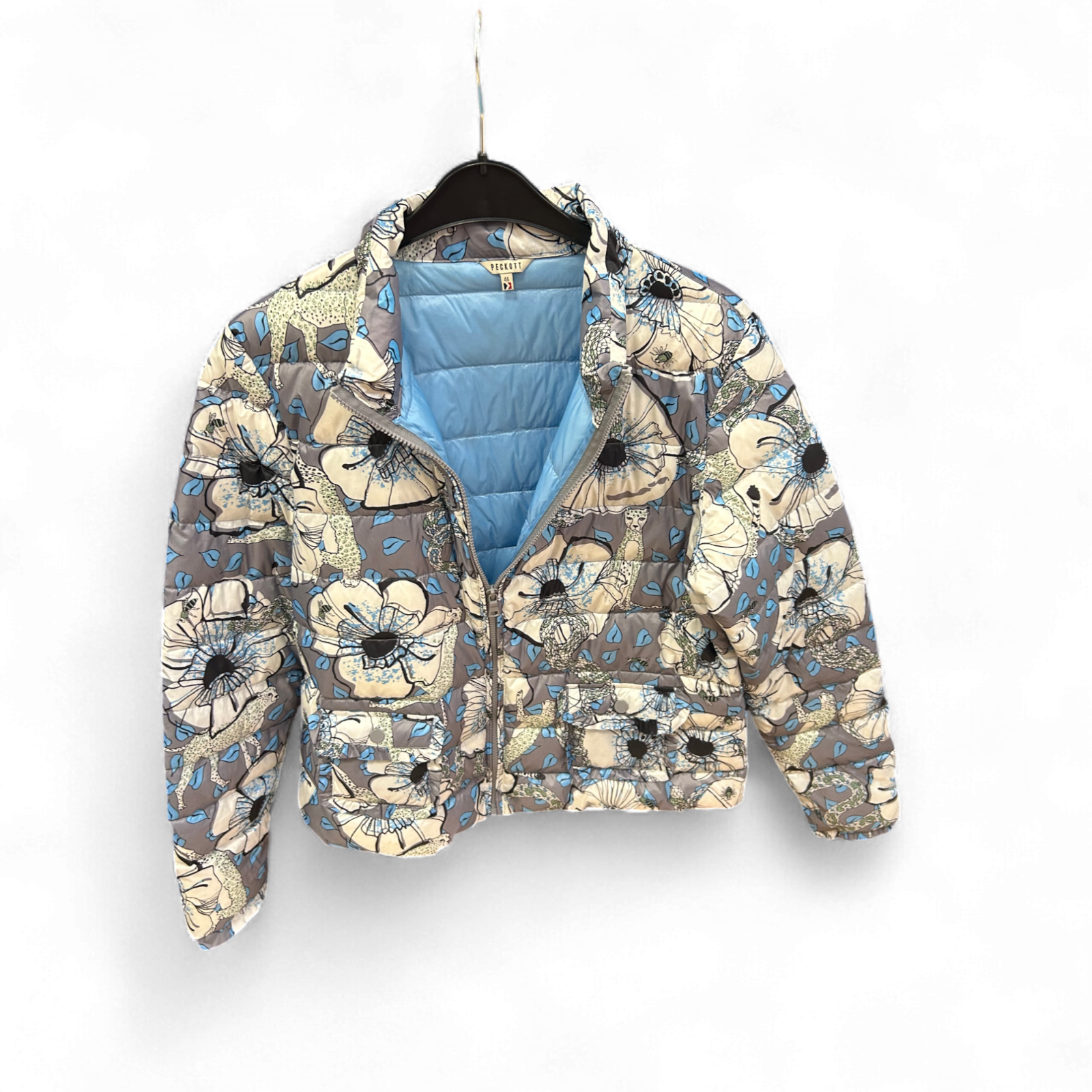 Peckott Daunenjacke Größe 46 Grau Blumen Steppung Übergangsjacke Damen