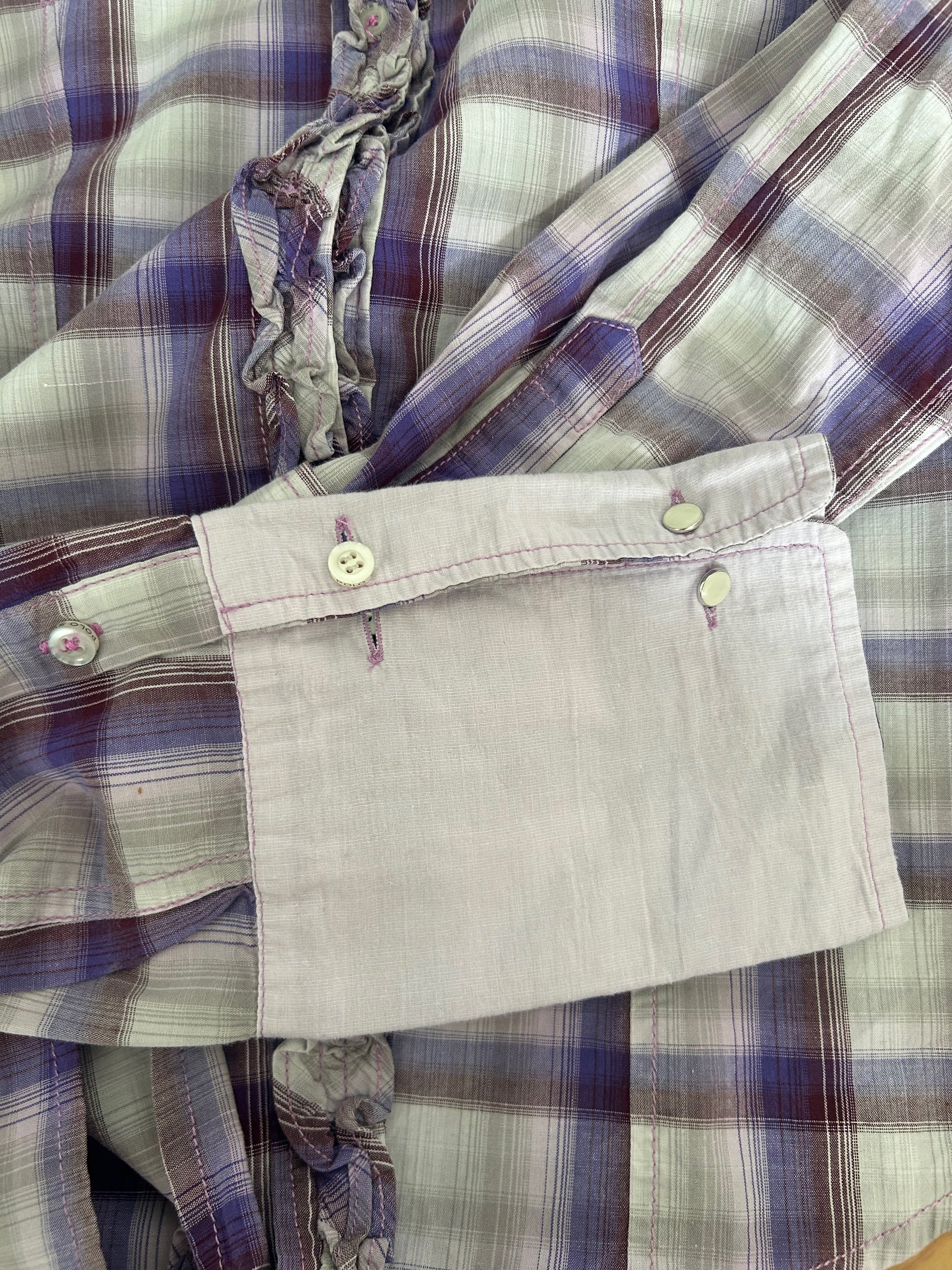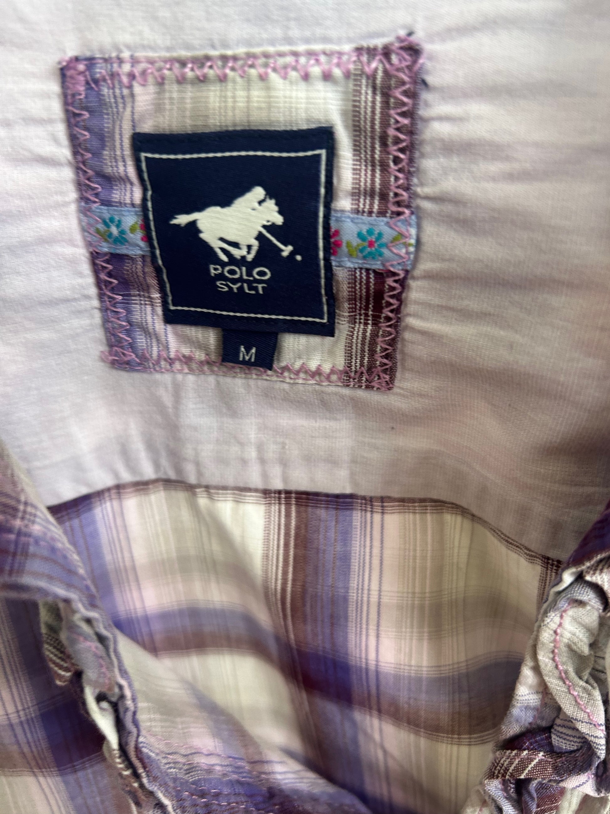 Polo Sylt Damenbluse M Violett Kariert Rüschen Baumwolle Langarm Top Zustand
