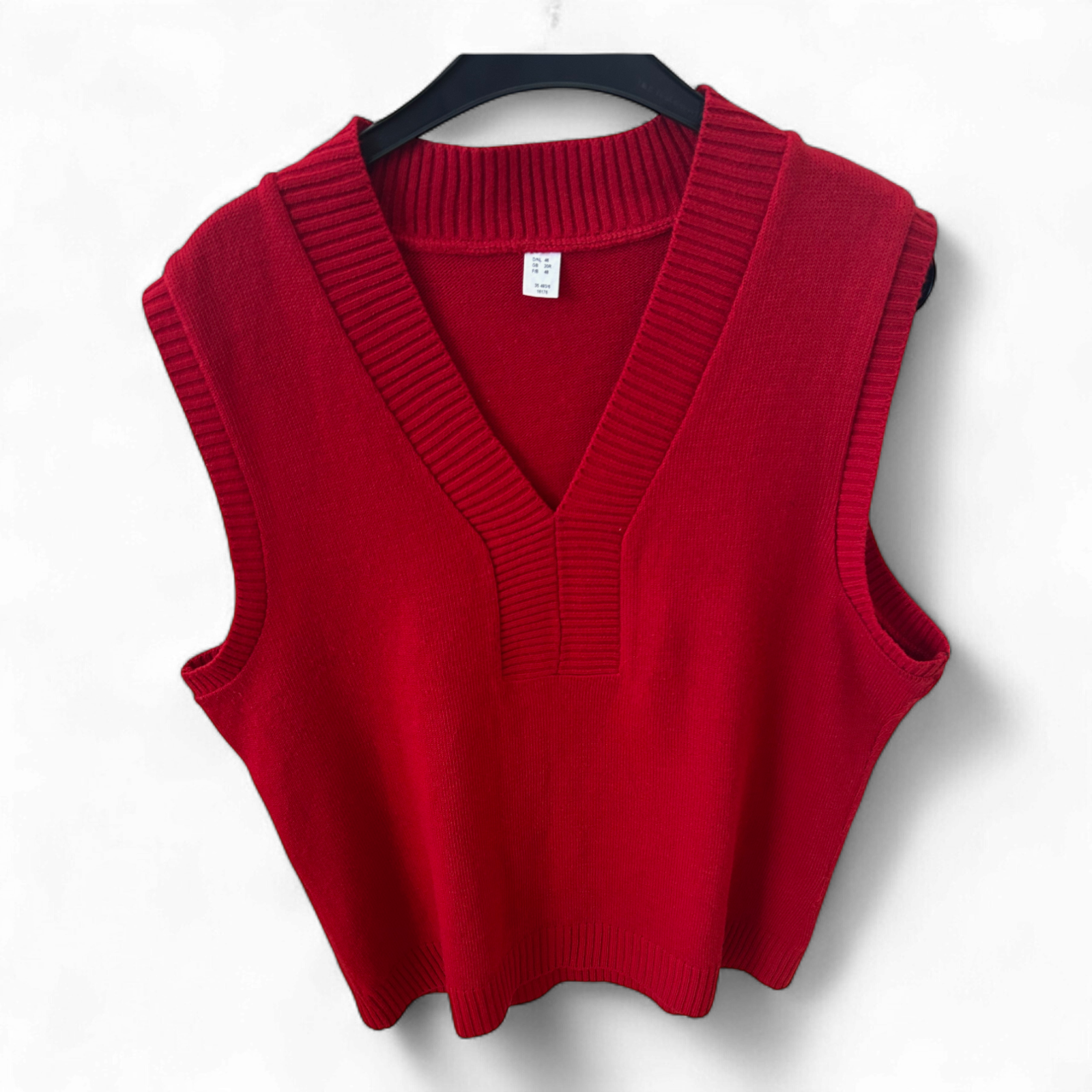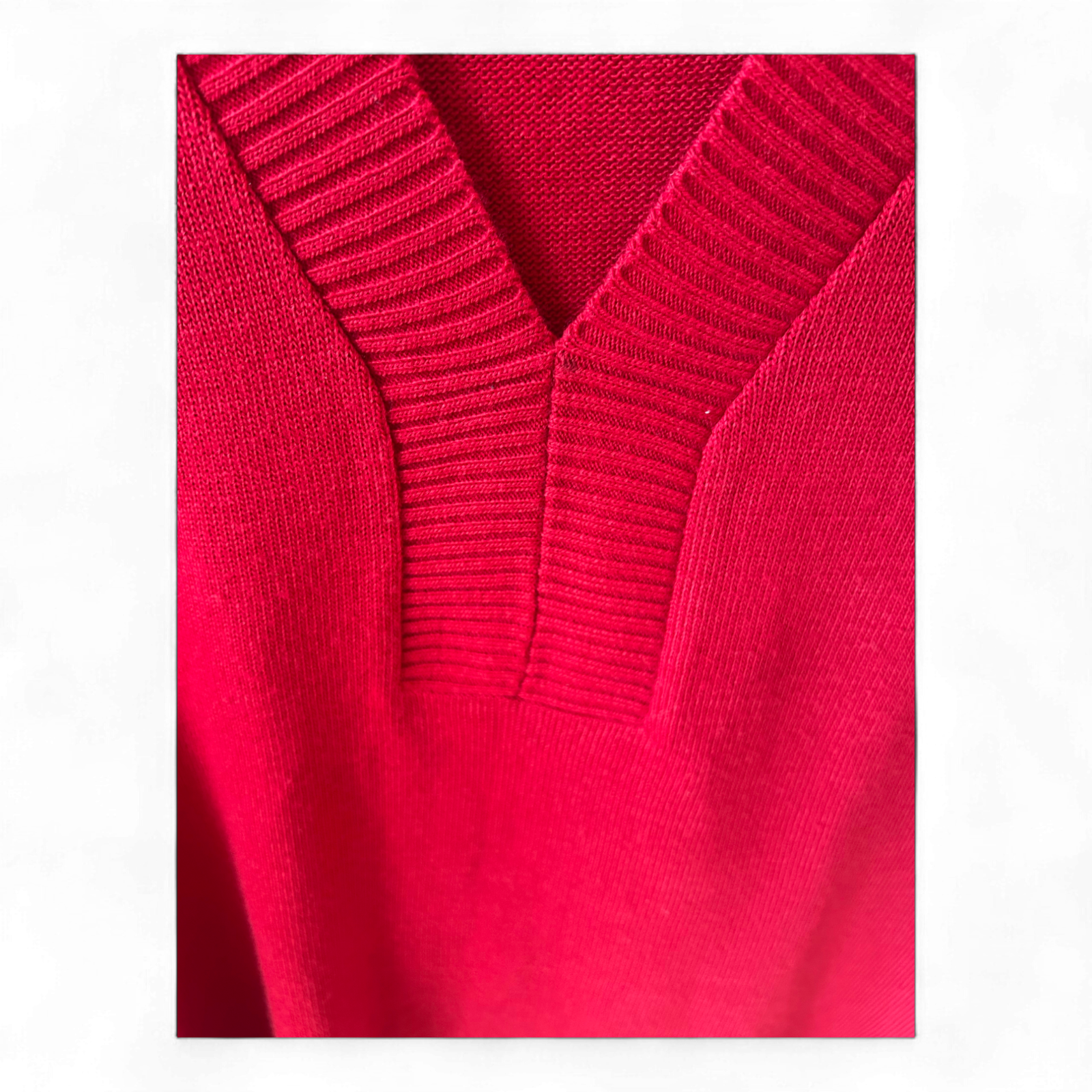 Pure Panda Pullunder Rot Gr 46 V Ausschnitt Gerippt Oversize Look Stricktop