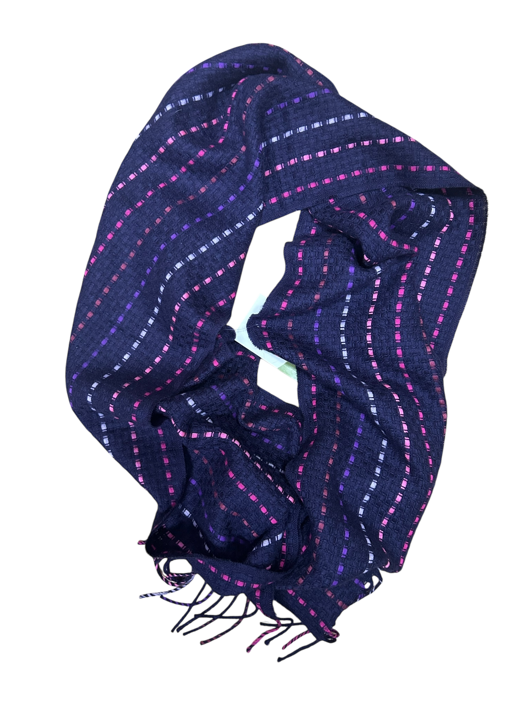 Dieser hübsche Schal von Pure Panda begeistert mit seinem feinen Streifendesign in Pink, Lila und Rot auf dunkelblauem Grund. Das strukturierte Gewebe liegt angenehm leicht auf der Haut und macht jedes Outfit spannender.
