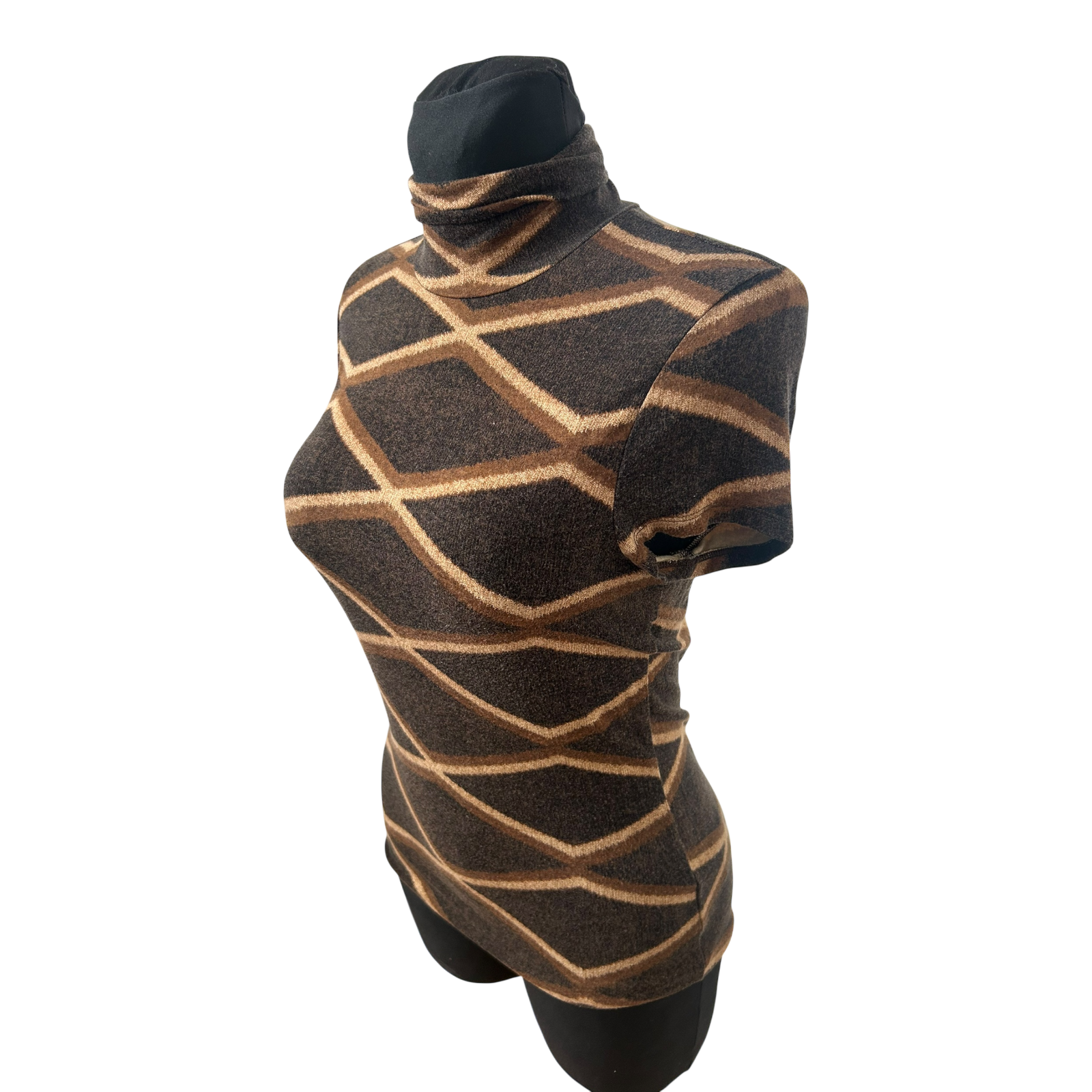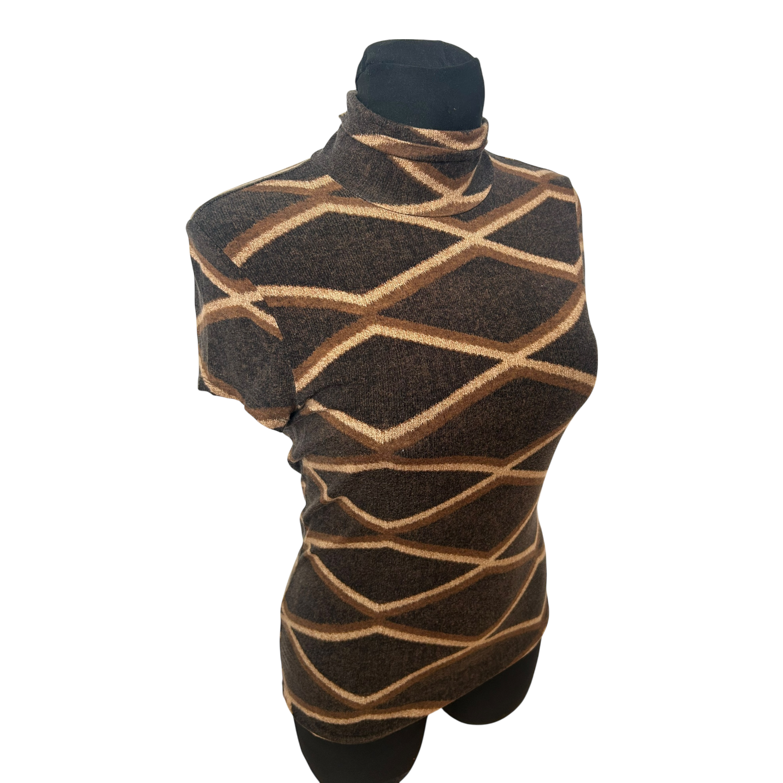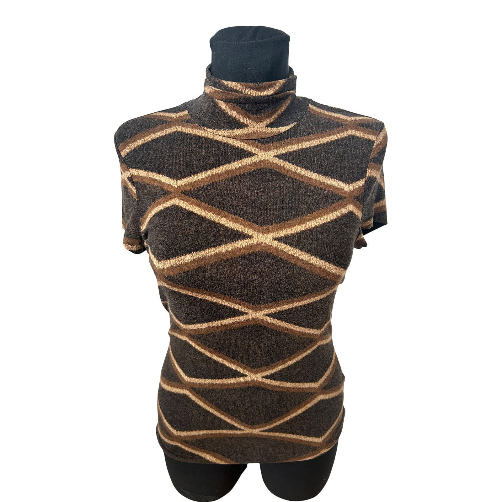 Elegantes Damen-Shirt von Ralph Lauren in Größe M in warmem Braunton mit kleinem Rollkragen. Das geometrische Linienmuster verleiht dem Shirt eine edle, moderne Ausstrahlung und macht es vielseitig kombinierbar – sowohl casual als auch schick ✨