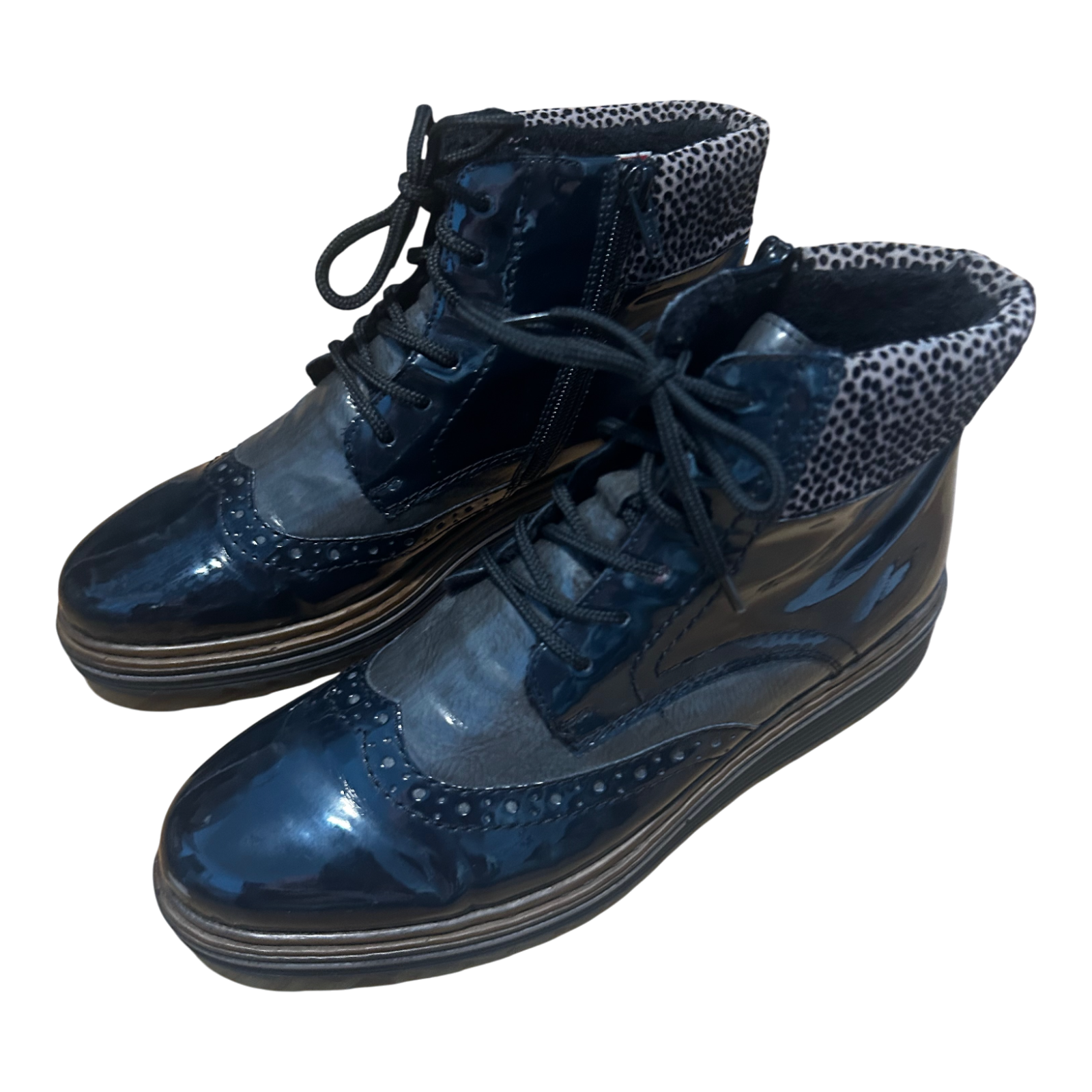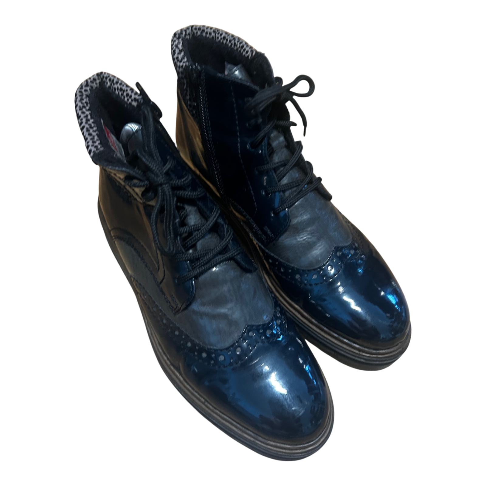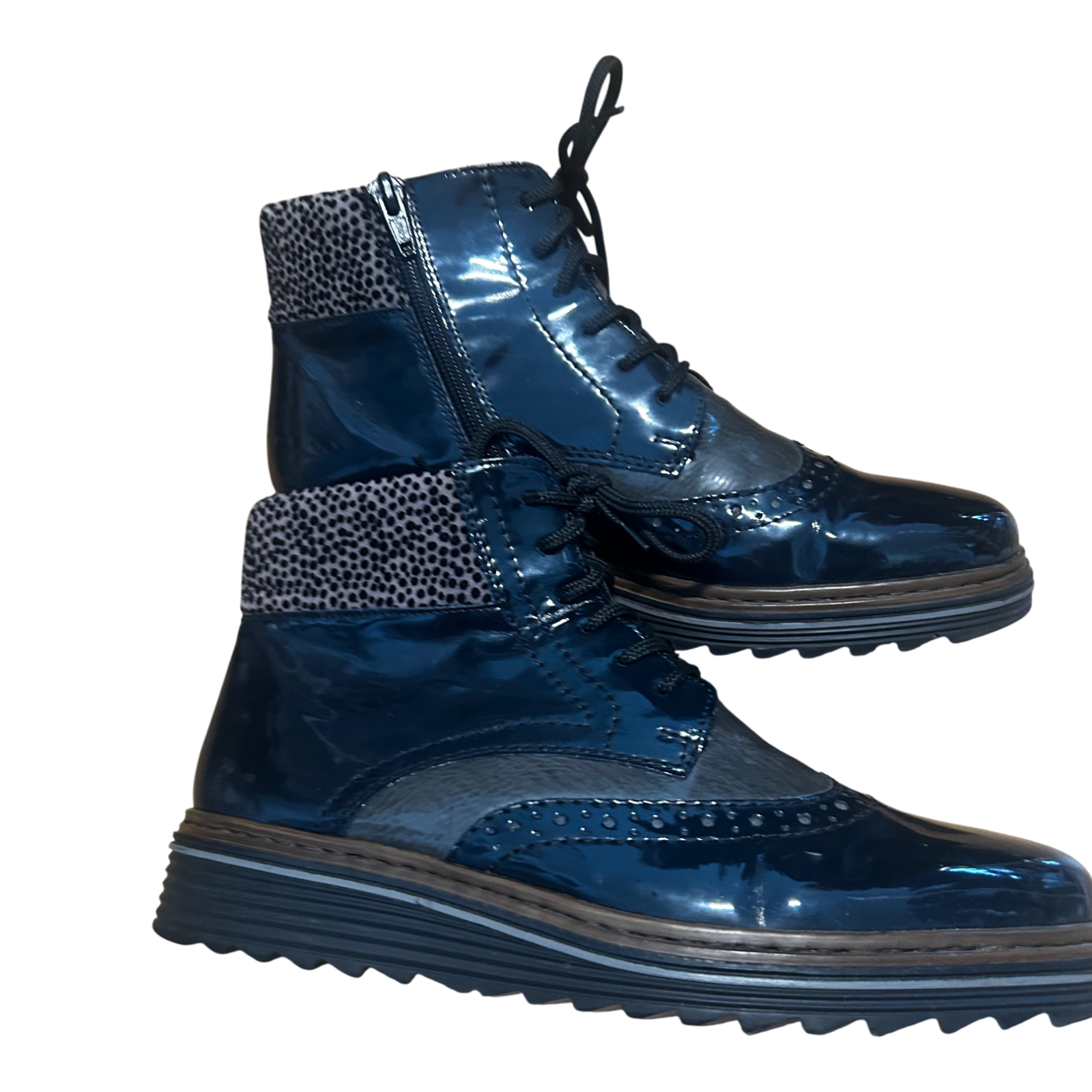 Rieker Damen Stiefeletten Gr 40 Dunkelblau Kunstleder Warm Gefüttert Profilsohle