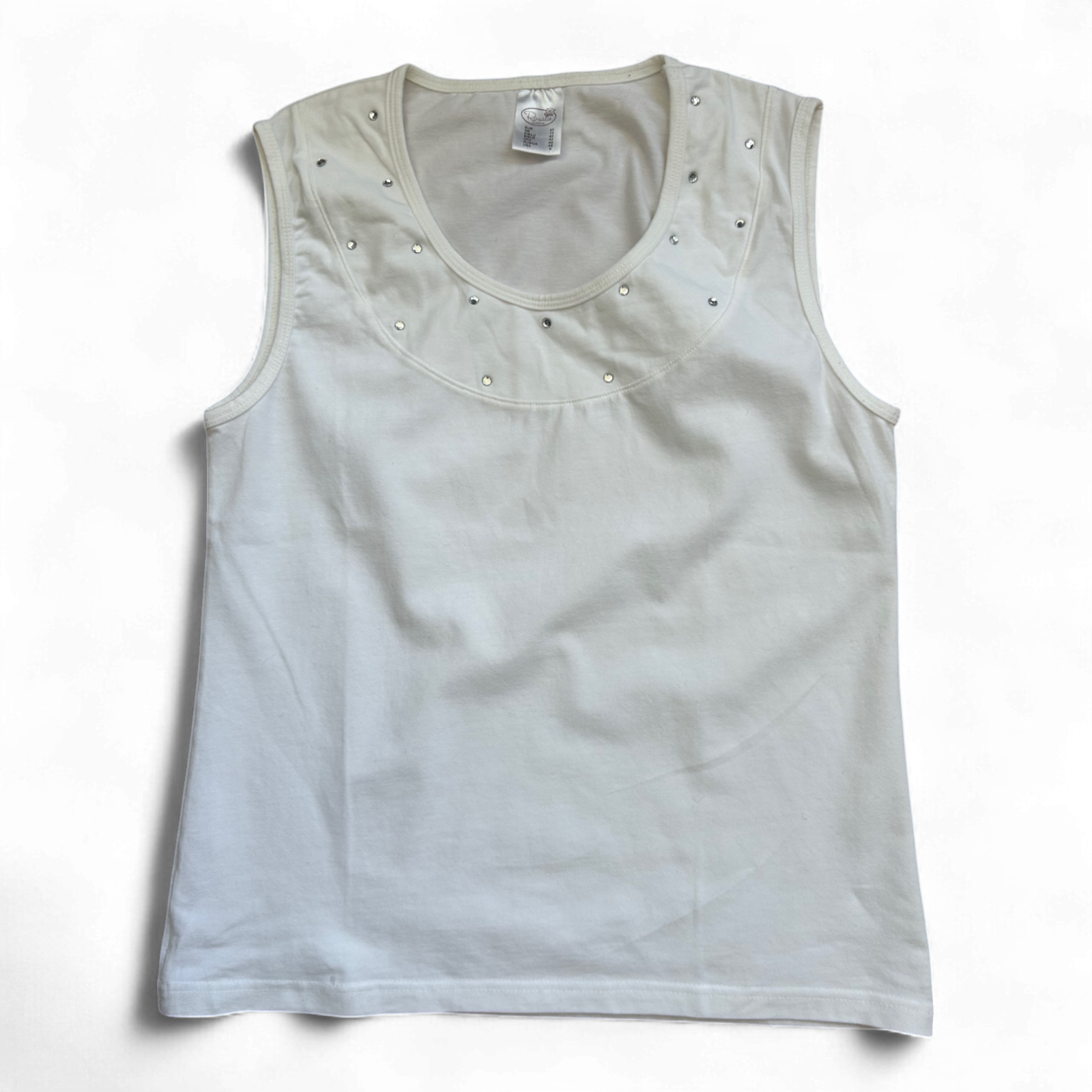 ✨ Feminines Top in Weiß mit glänzenden Strasssteinchen – perfekt für Alltag & Freizeit! Leicht tailliert und angenehm stretchig 🧺