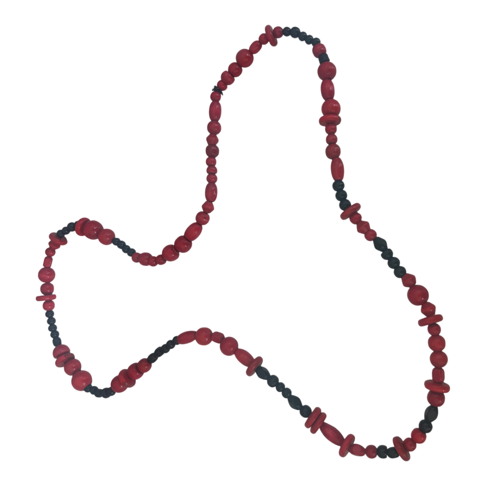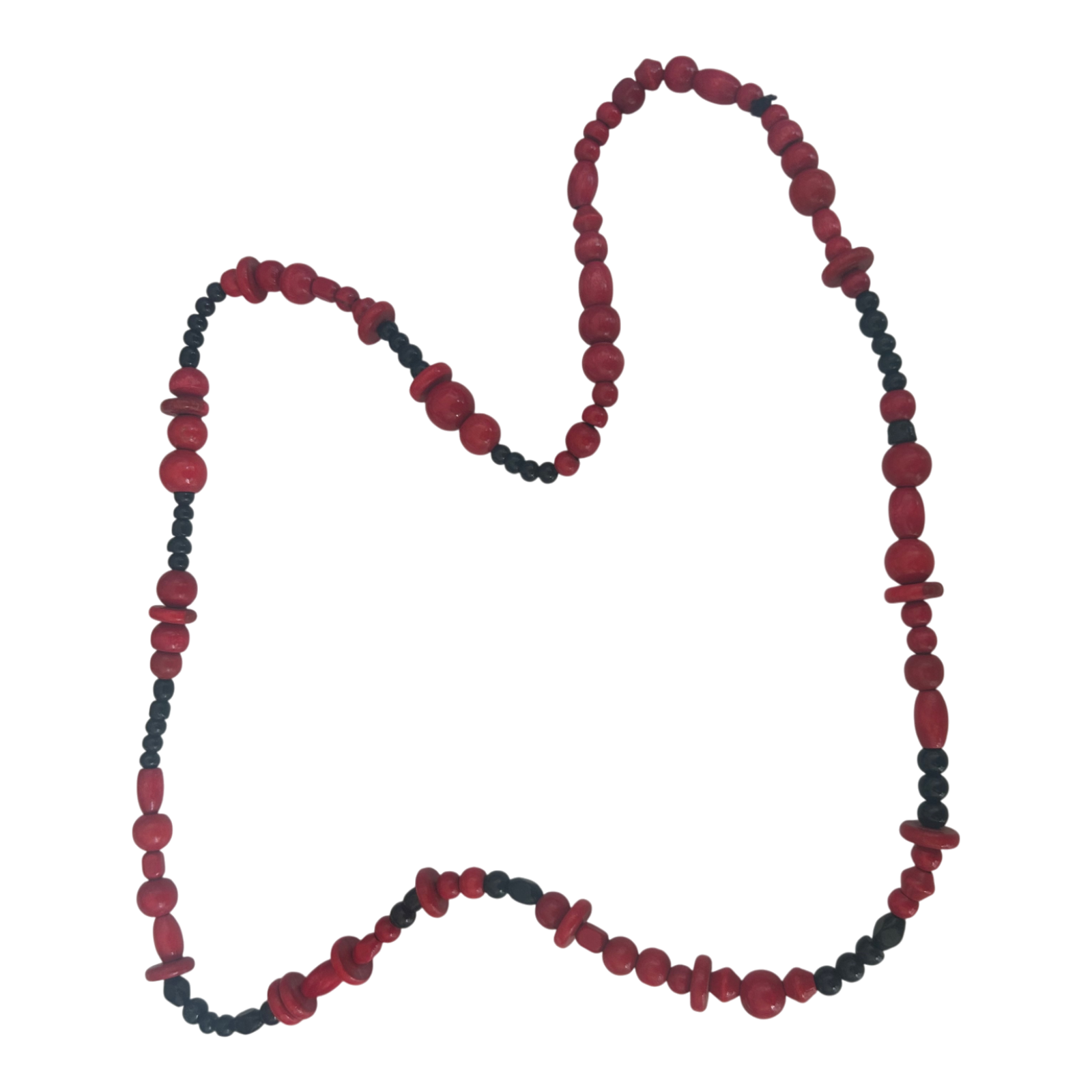 Lange Kette aus roten und grauen Kunststoffperlen in verschiedenen Formen. Die Kette hat einen Umfang von ca. 80 cm und wird ohne Verschluss getragen. Das elastische Band aus Gummischnur sorgt für ein bequemes An- und Ablegen. Ein farbenfrohes Accessoire, das zu vielen Outfits passt und einen modernen, verspielten Akzent setzt. 💫