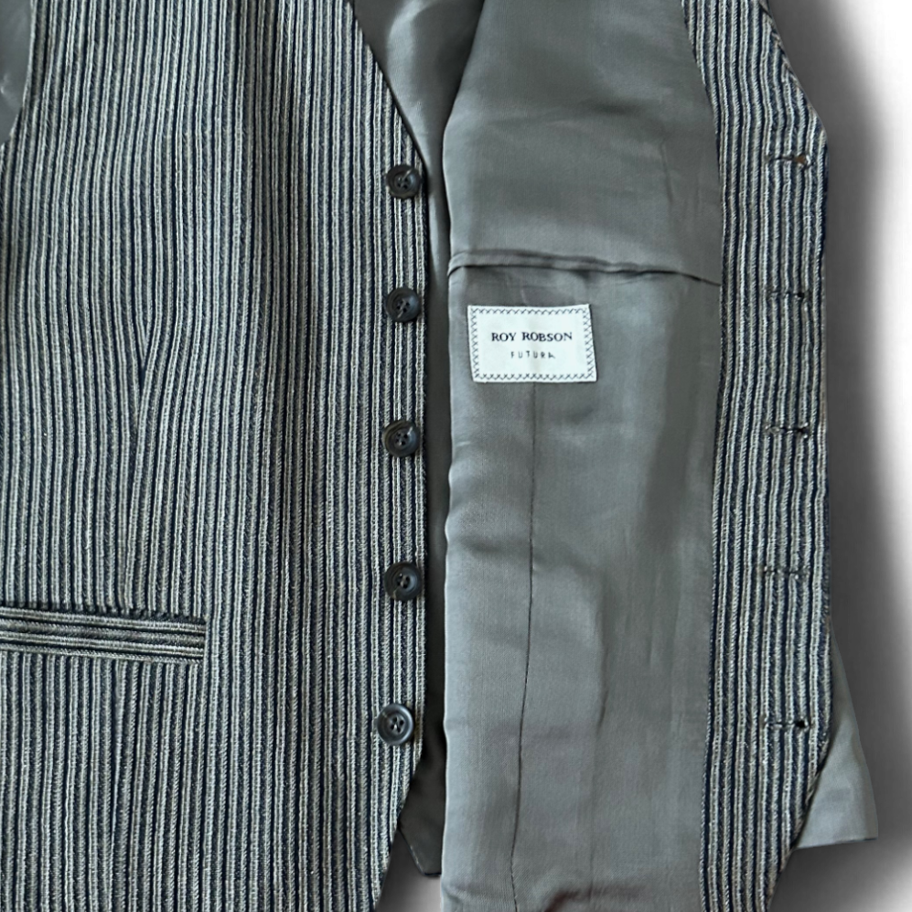 Elegante Weste von Roy Robson Futura in einem stilvollen Taupe-Ton mit feinem Nadelstreifenmuster. Die Weste wirkt klassisch, hochwertig und sehr gepflegt und eignet sich ideal für Business, festliche Anlässe oder einen anspruchsvollen Freizeitlook ✨