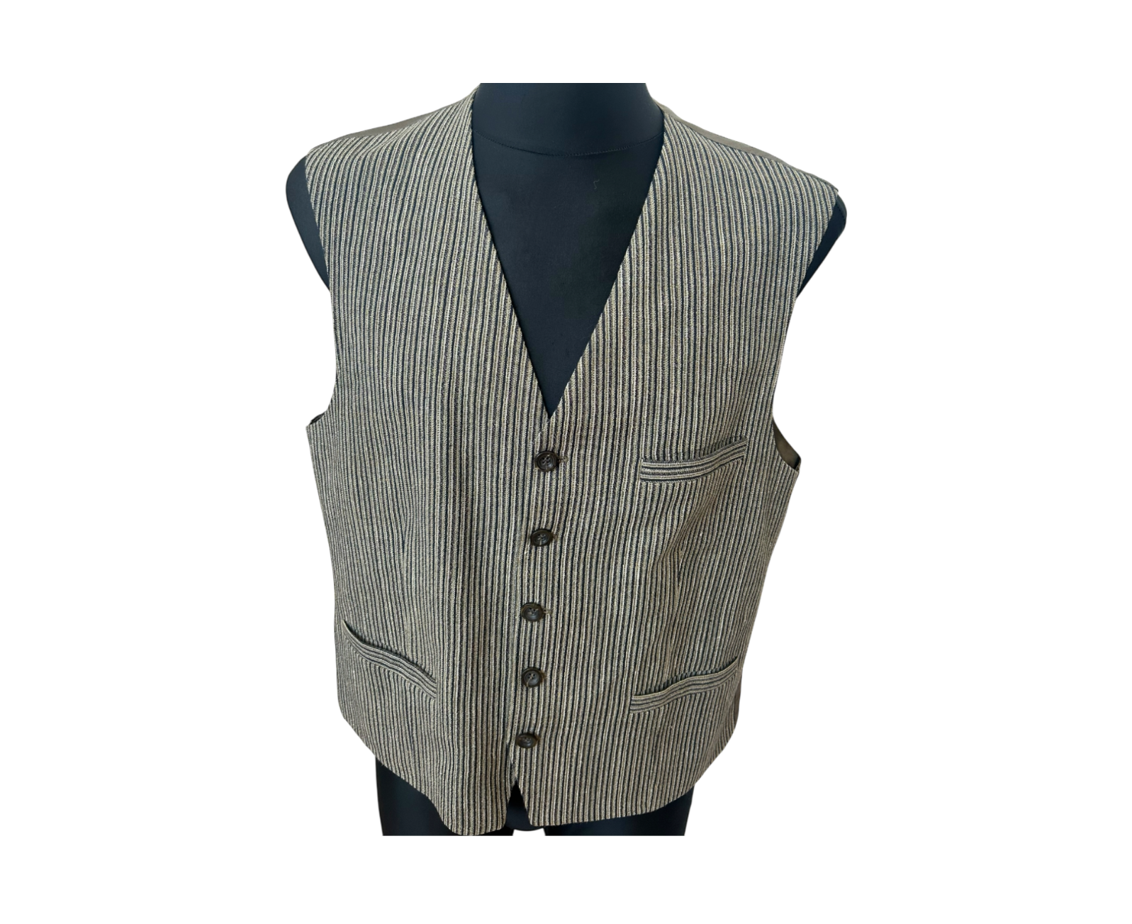 - Besonderheiten: Hochwertige Materialmischung, Nadelstreifenmuster, Verstellbarer Rückenriegel, Klassische Knopfleiste