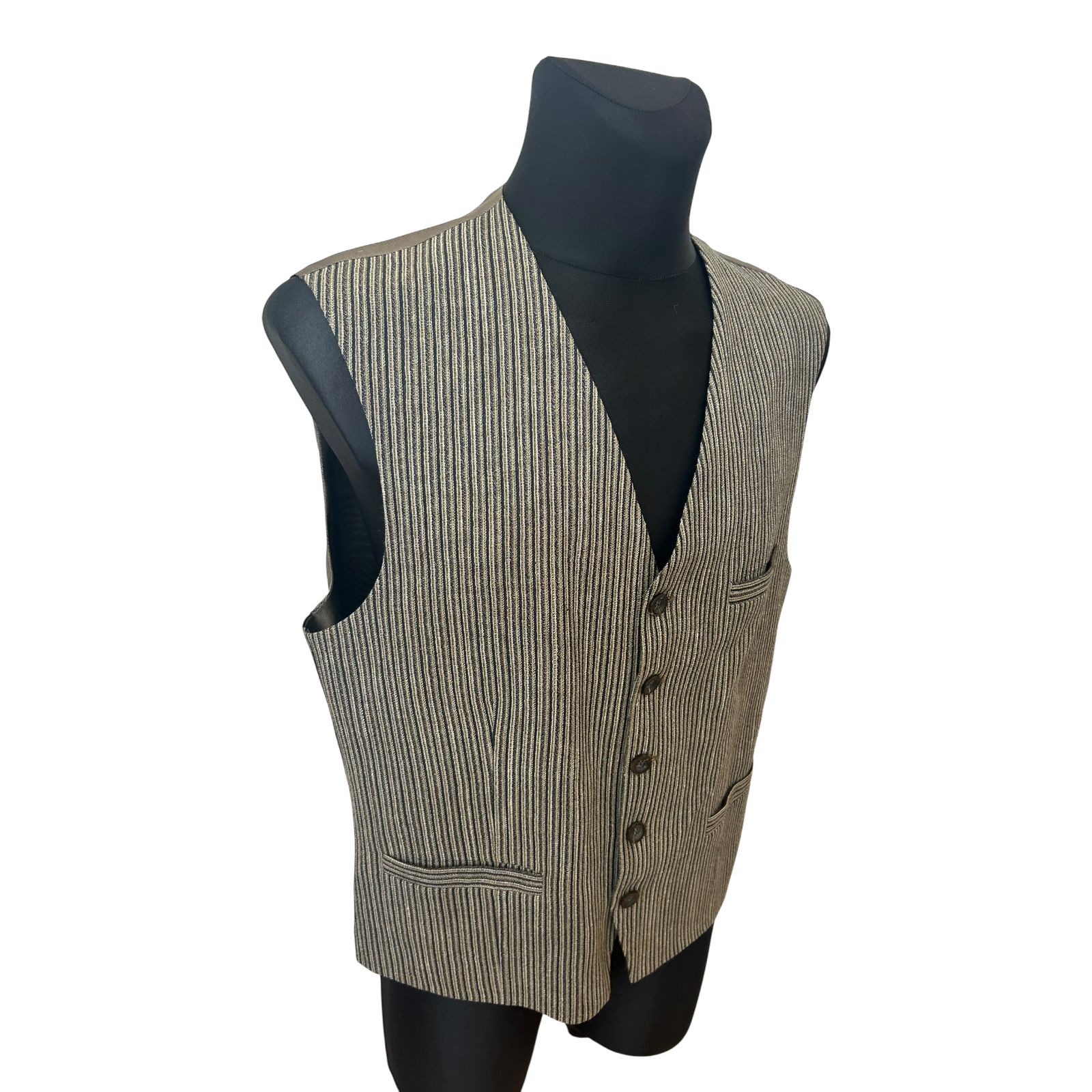 Roy Robson Weste Herren Gr 50 Taupe Nadelstreifen Schurwolle Leinen