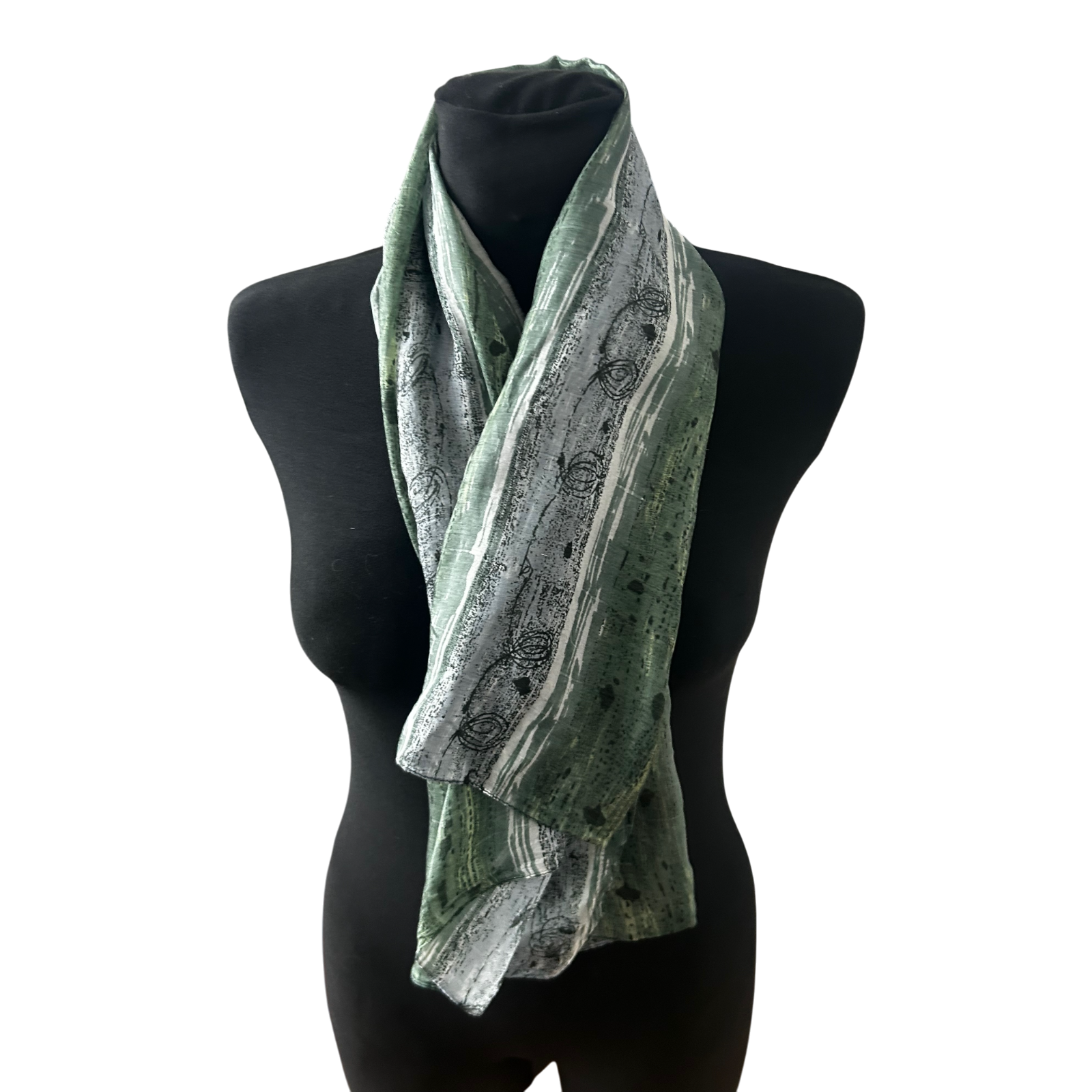 Seidentuch Damen Tuch Schal 100 x 100 Grün Grau Muster Elegant Leicht