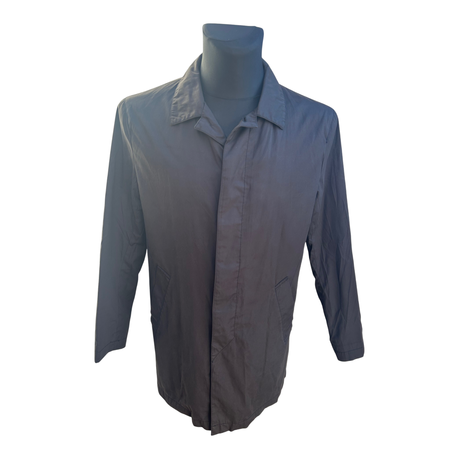- Besonderheiten: Leicht gefüttert, verdeckte Knopfleiste, zwei Innentaschen, klassischer Kragen