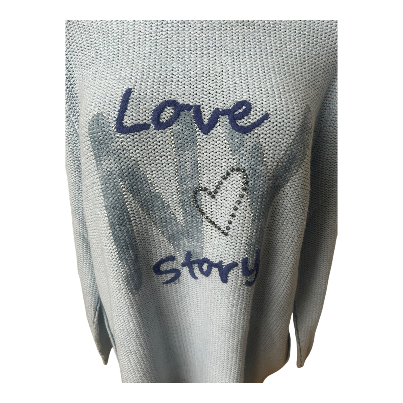 Six o Seven Pullover Damen Hellblau Oversize Langarm Grobstrick Love Print