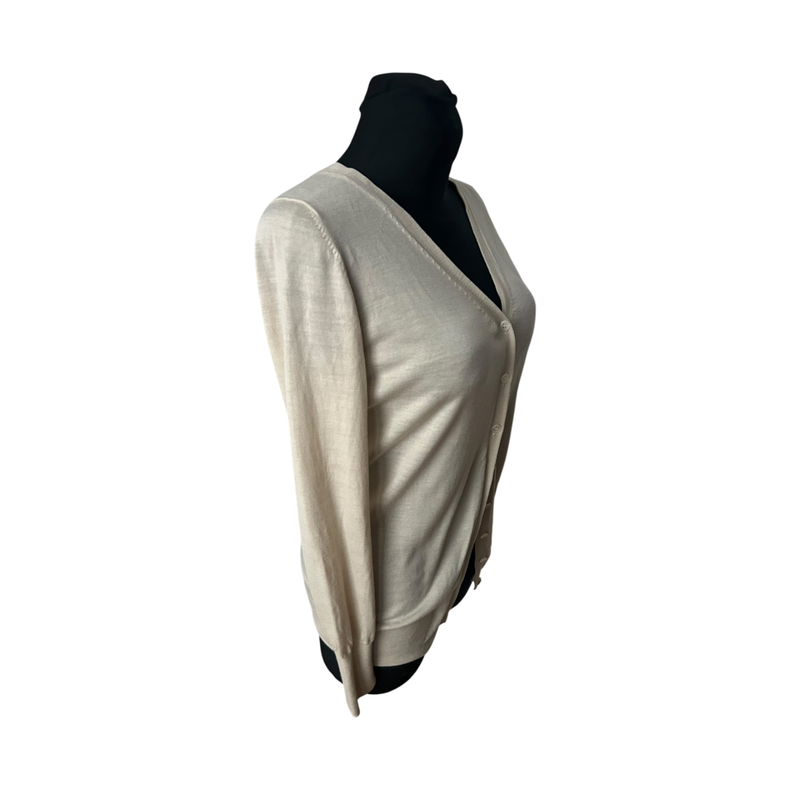 Sehr edle Strickjacke der Marke Strenesse in einem zeitlosen, hellen Beigeton. Der Cardigan ist in Größe 40 ausgezeichnet und überzeugt durch seine klare Linienführung, den femininen V-Ausschnitt und die feine Knopfleiste. Das Modell wirkt pur, hochwertig und äußerst stilvoll – ein echtes Klassikerstück für eine anspruchsvolle Garderobe ✨🤍