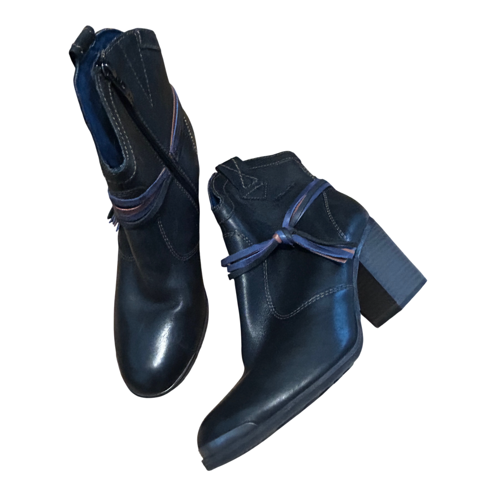 Tamaris Stiefeletten Damen Schuhe Gr 40 Schwarz Leder Blockabsatz Reißverschluss