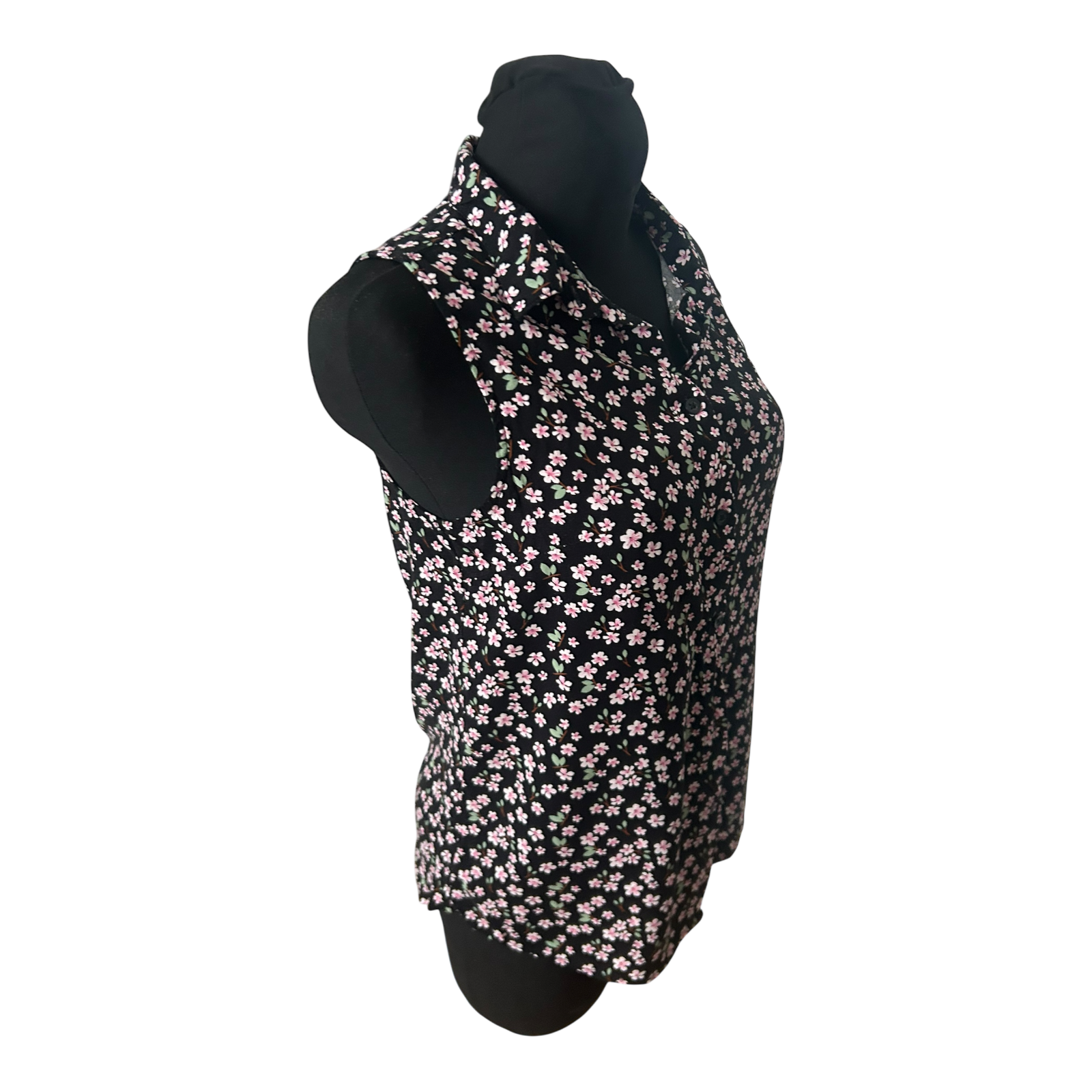 Tessentials Damen Bluse ärmellos Gr M Schwarz Blumen Viskose Sommer Casual