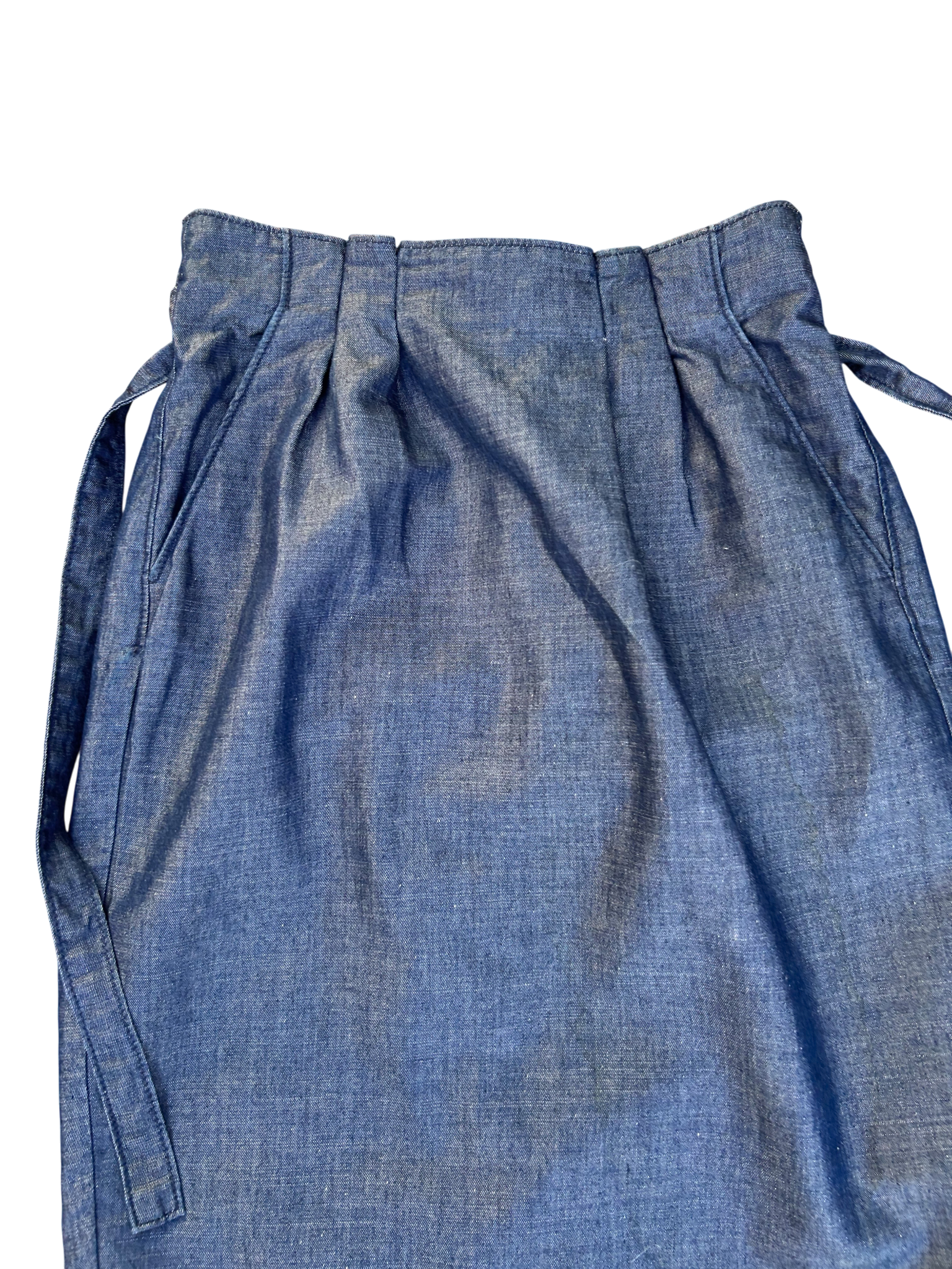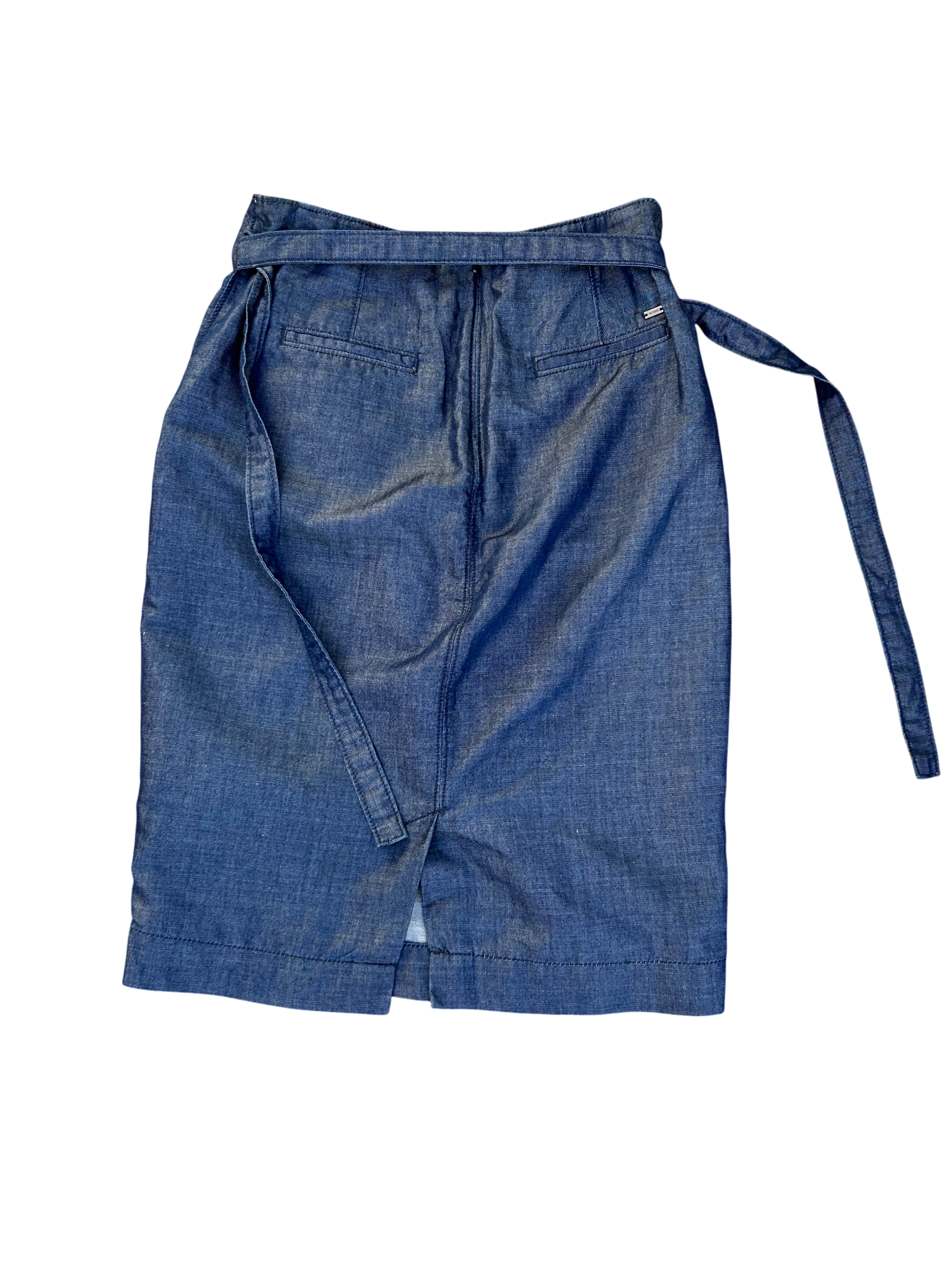 Tommy Hilfiger Damen Jeansrock Blau Gr 36 Baumwolle Leinen Lyocell Bindegürtel Knielang
