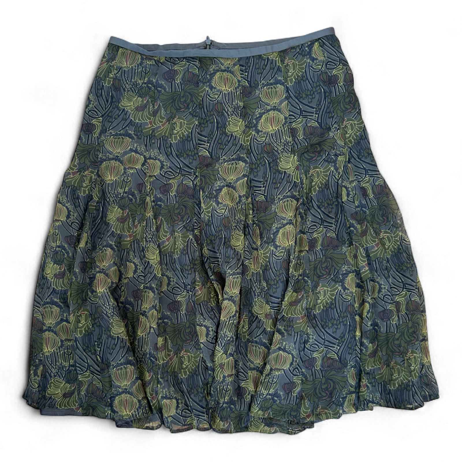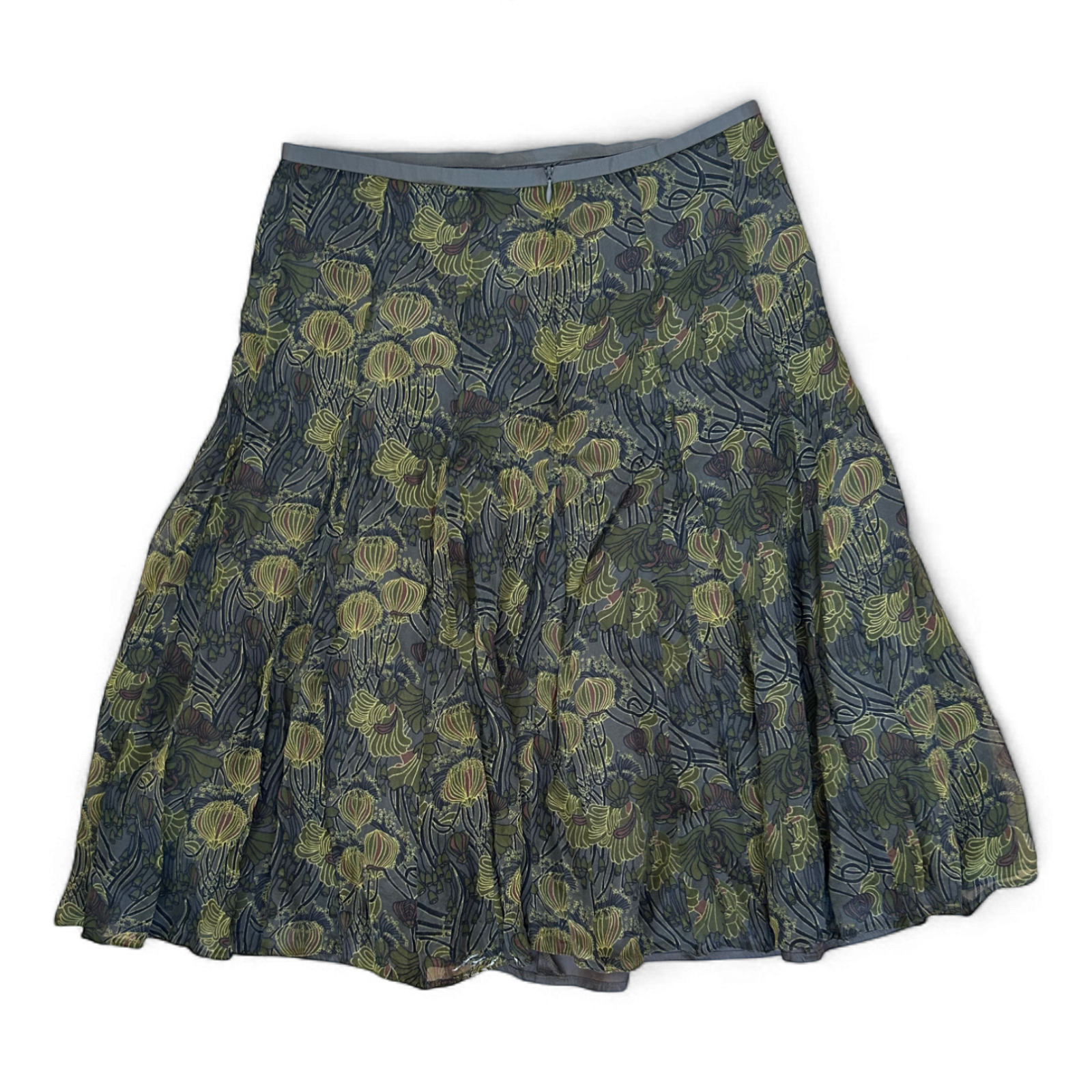 Turnover Midirock Grün Floral Gr 38 Ausgestellt 100 Seide Hochwertig Gefüttert