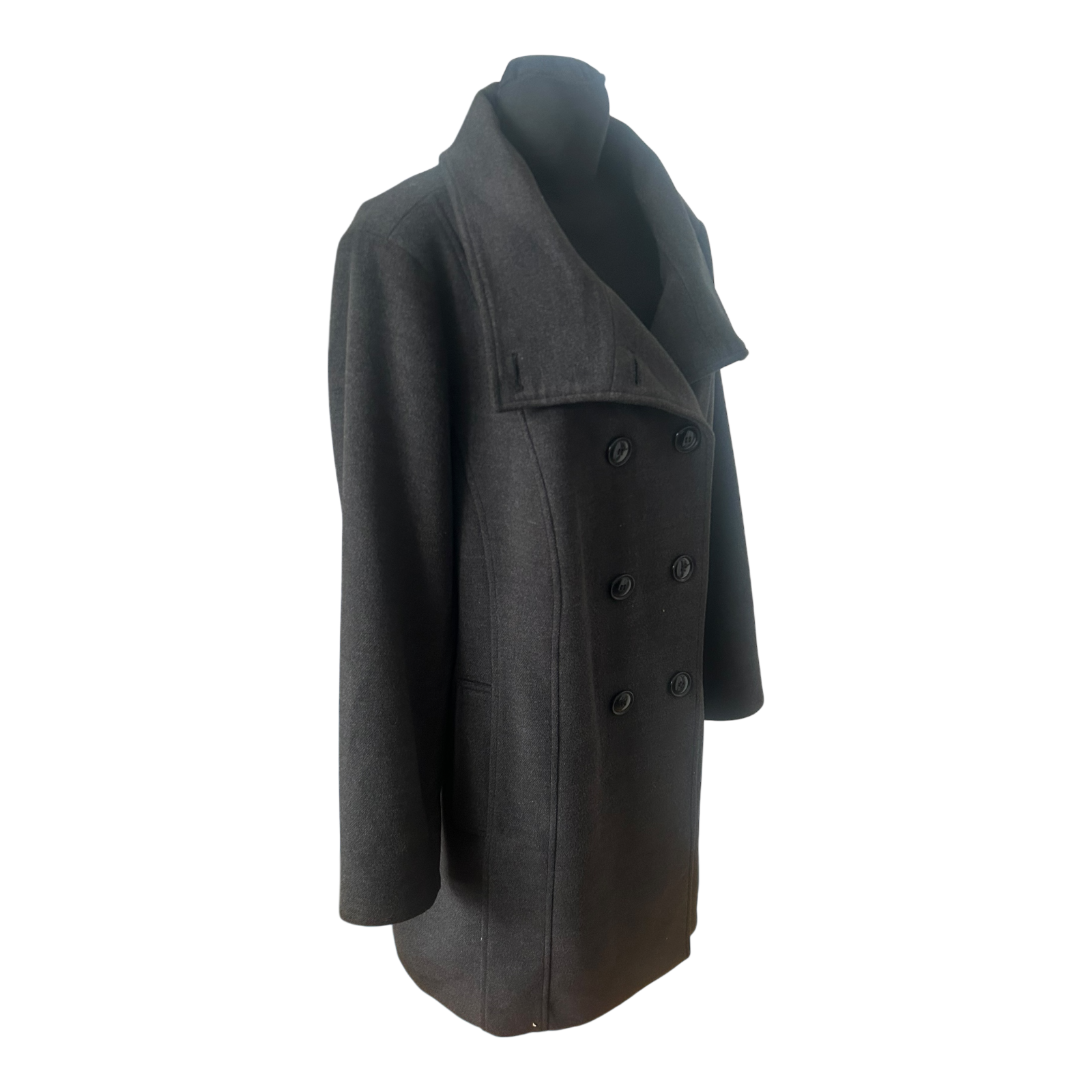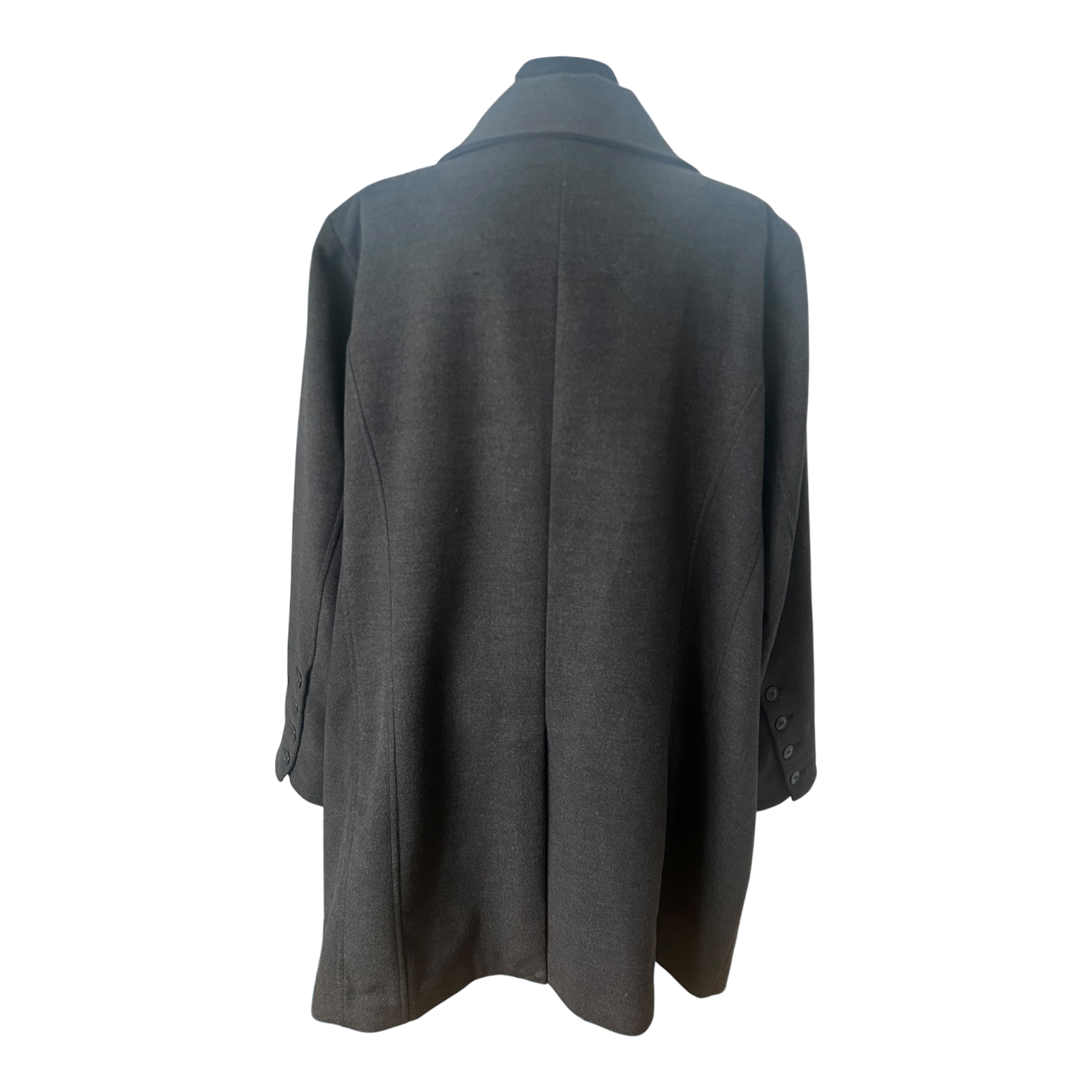 Eleganter Mantel von Ulla Popken in Größe 50 in edlem Anthrazit mit doppelreihiger Knopfleiste und schönem, hohem Kragen – wirkt sofort angezogen und hochwertig ✨ Der Oberstoff besteht aus 82% Polyester, 15% Viskose und 3% Elasthan, das Innenfutter aus 100% Polyester. Maße: Brustweite ca. 69 cm, Länge ca. 98 cm, Ärmellänge ca. 68 cm. Pflegehinweis: Reinigung empfohlen 🖤