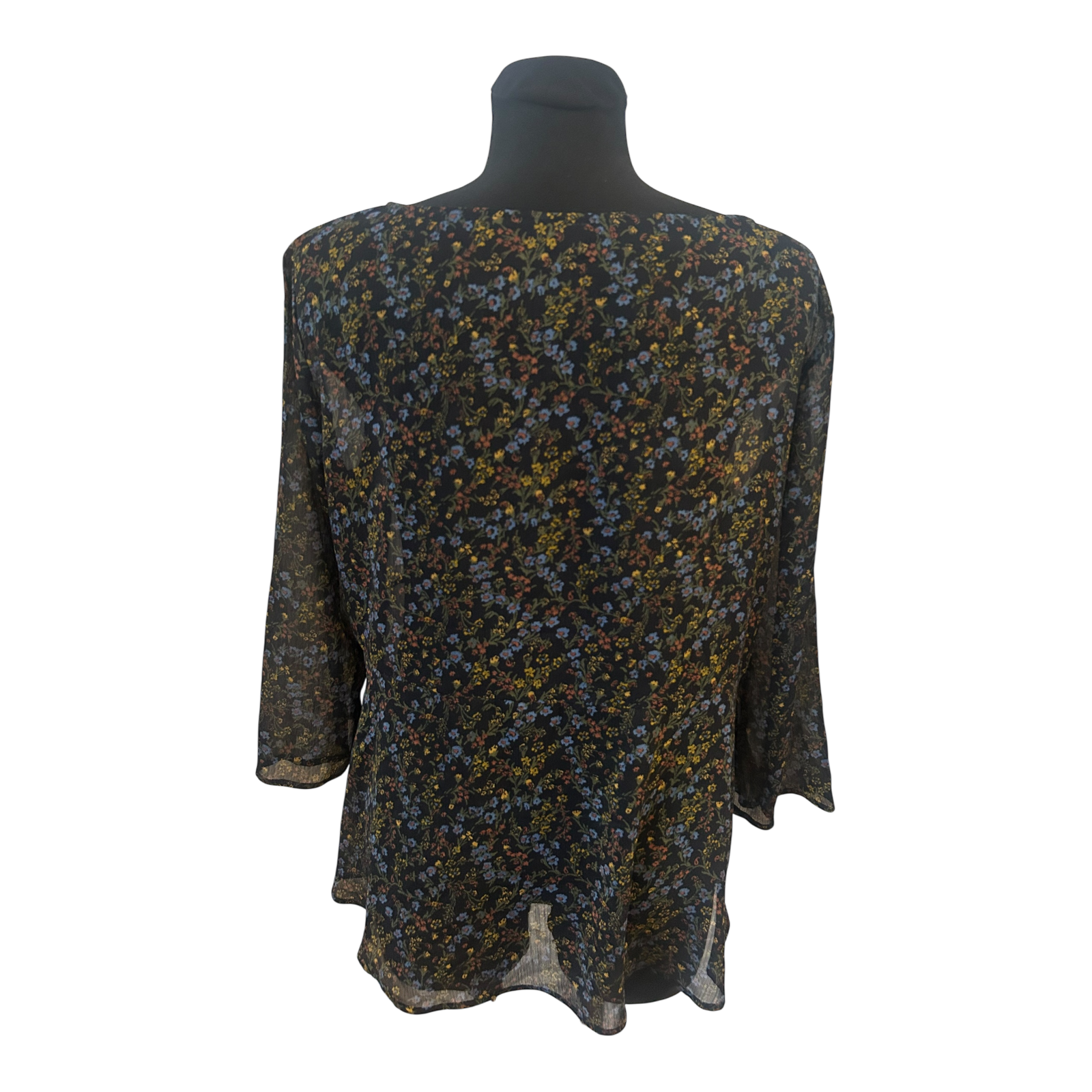 Uniqlo Bluse Damen Gr L Schwarz Transparent Blumen Dreiviertelarm