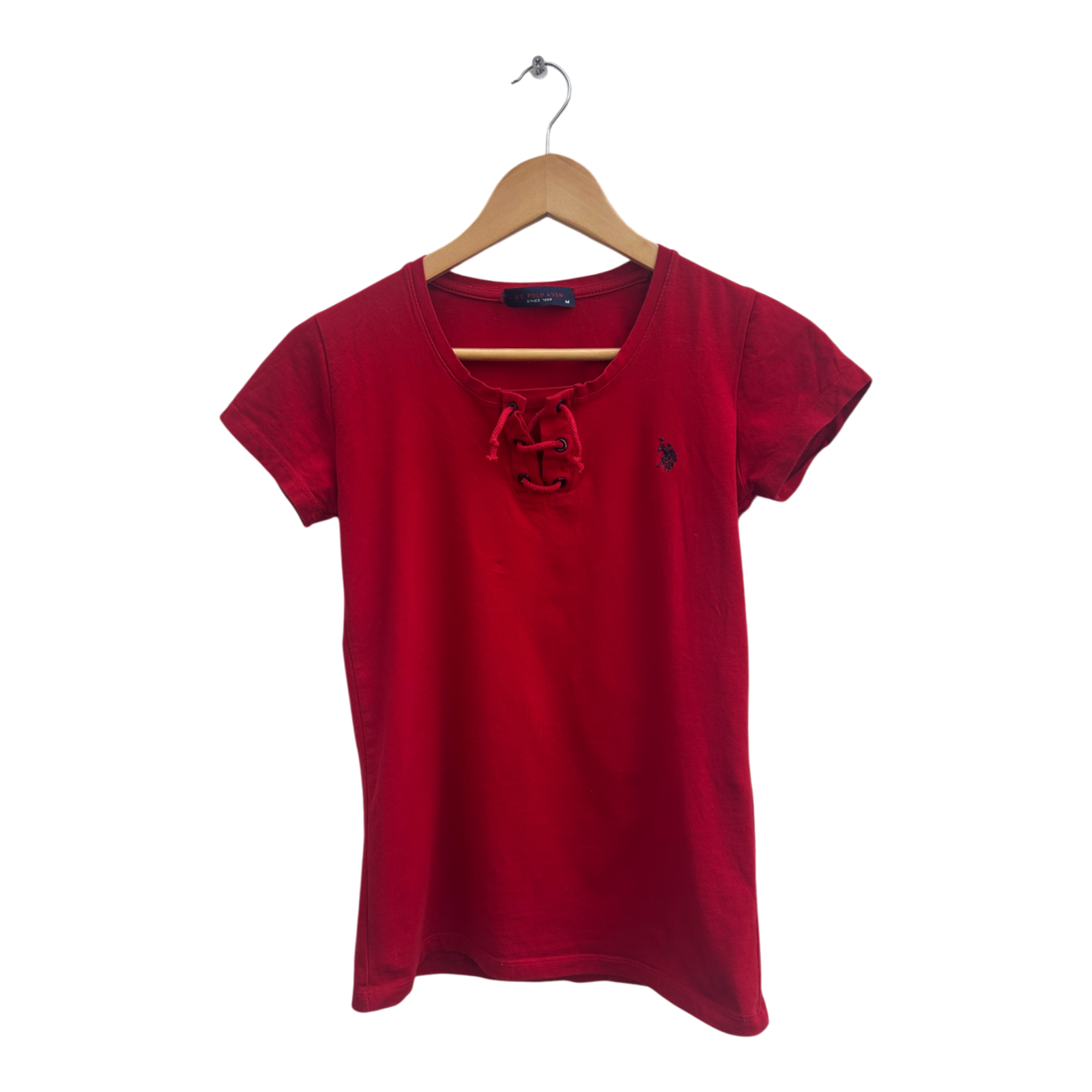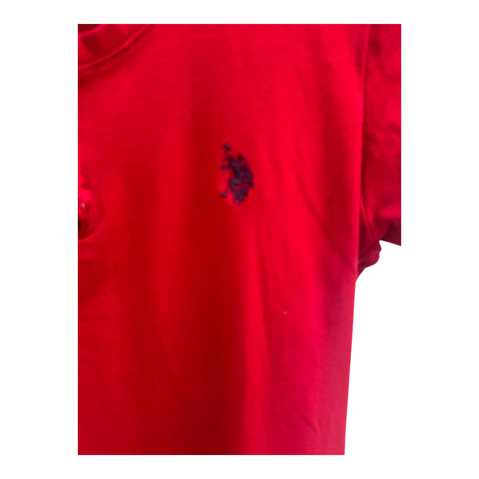 US Polo Damen T Shirt Rot M Baumwolle Stretch Kurzarm Logo Basic Freizeit