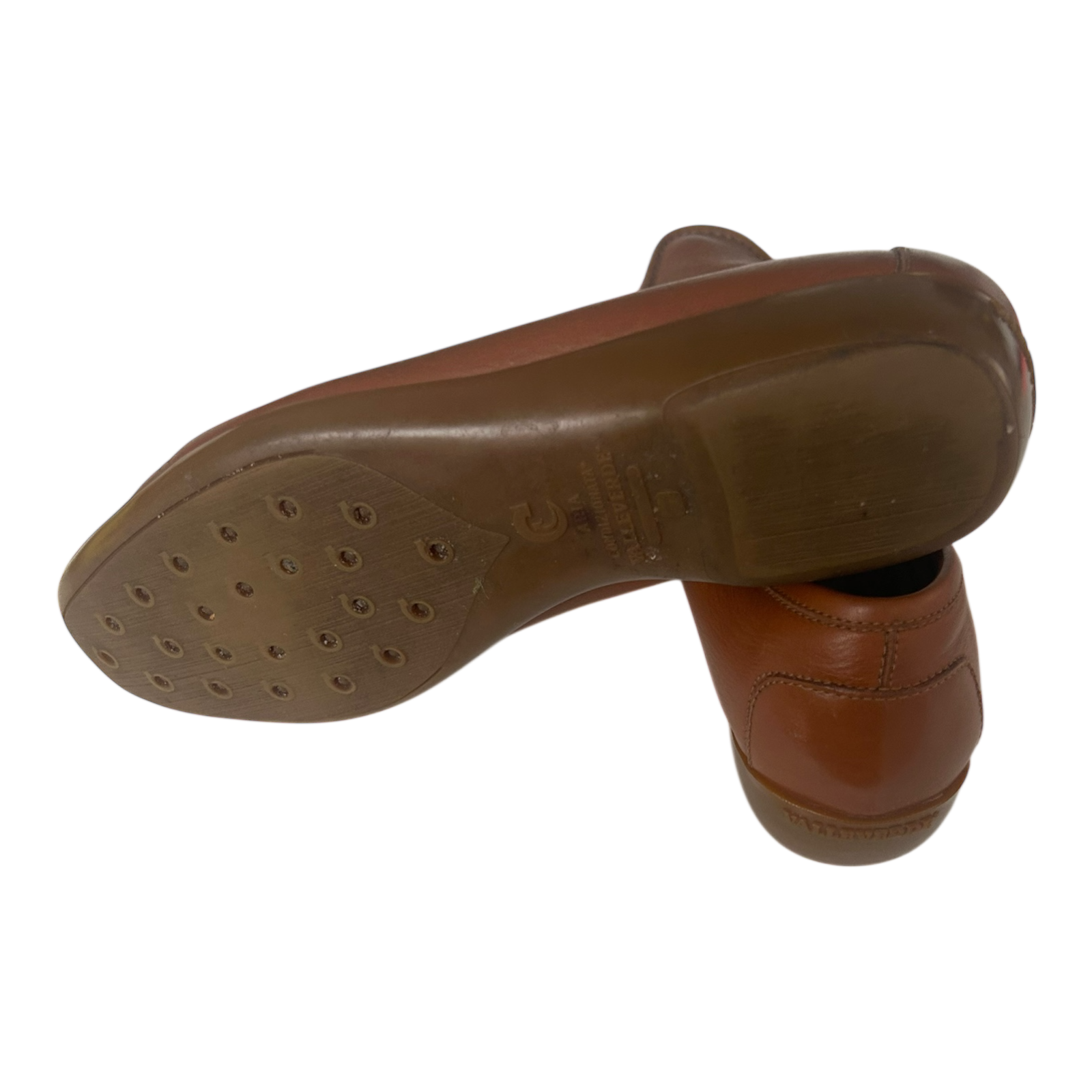 Die Schuhe haben die Größe 40. Der Zustand ist akzeptabel mit sichtbaren Gebrauchsspuren, vor allem im Bereich der Schuhspitzen, die perspektivisch neu geklebt werden sollten. Sie sind jedoch noch gut tragbar. Insgesamt handelt es sich um ein solides, hochwertiges Paar mit italienischem Ursprung, ideal für Liebhaber langlebiger Lederschuhe 👞🤎