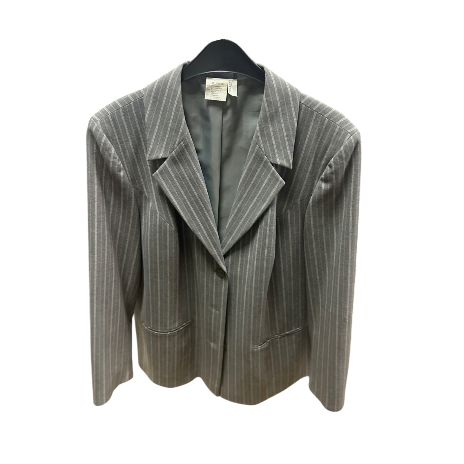 Vintage Blazer Grau Gr 46 Nadelstreifen Klassisch Gefüttert Stretch Elegant