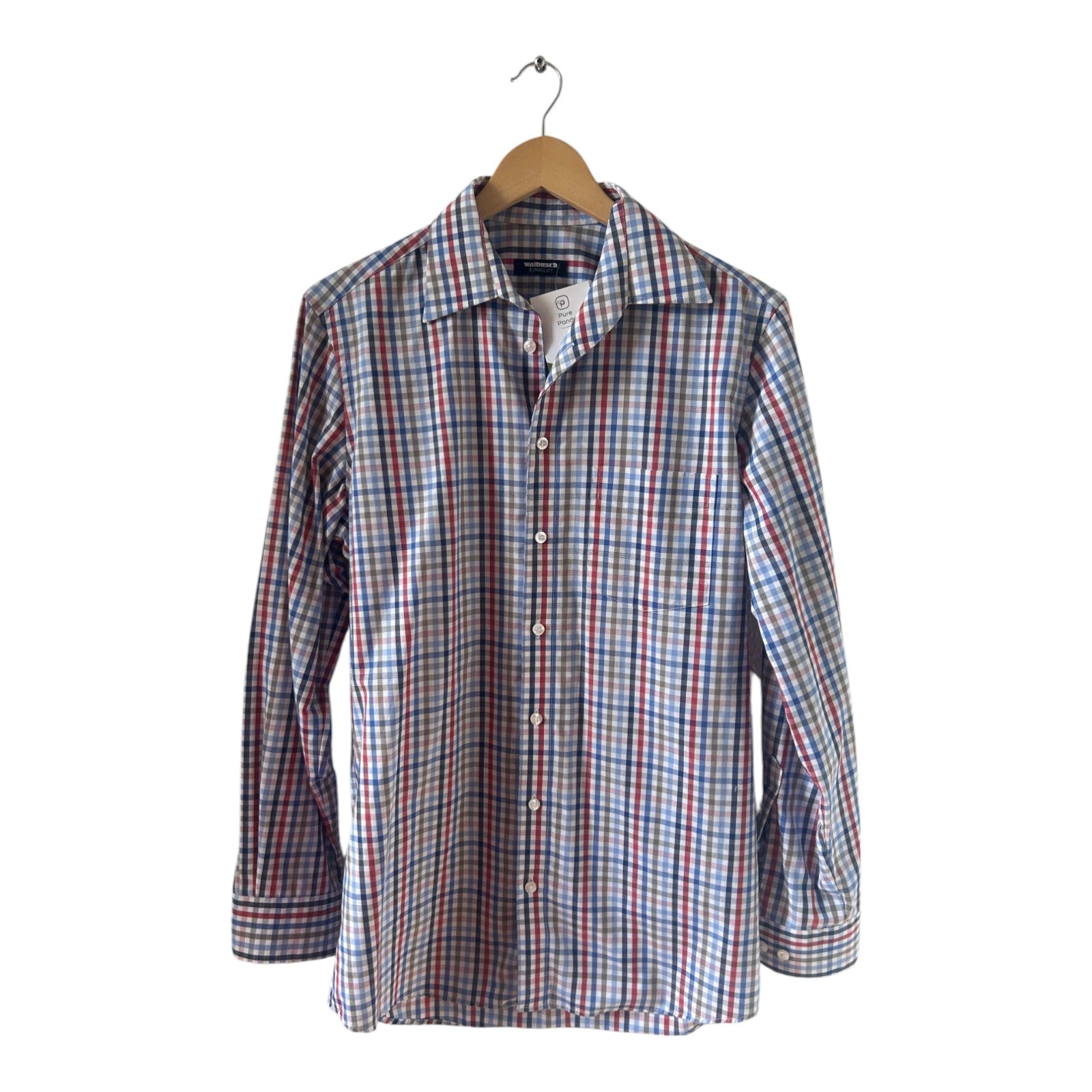 Walbusch Hemd Herren M kariert Extraglatt Baumwolle Langarm Pflegeleicht