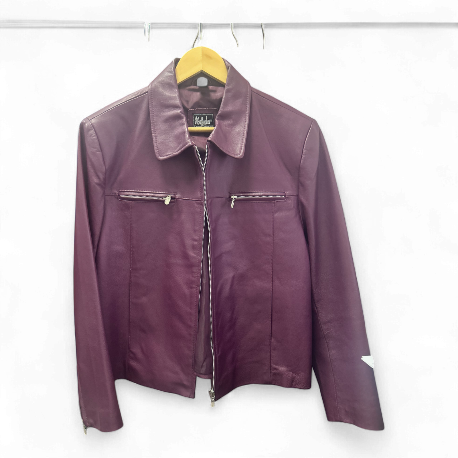 Woodpecker Lederjacke Lila Gr 44 Reißverschluss Echtleder Reißverschlusstaschen Kragen