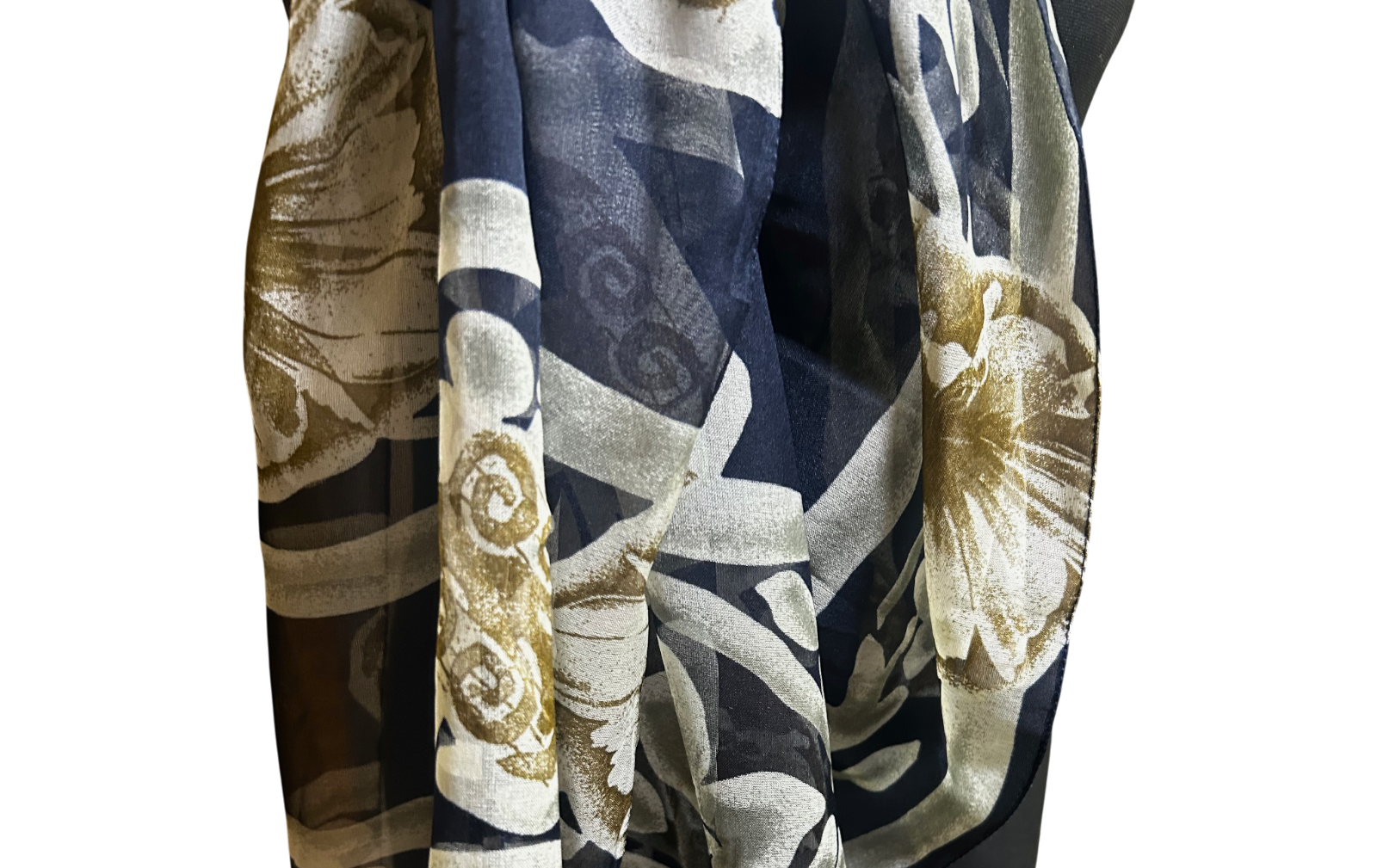 Wunderschöner Damen Schal Blau Beige Muster Elegant Leicht Poly 180 x 80 cm