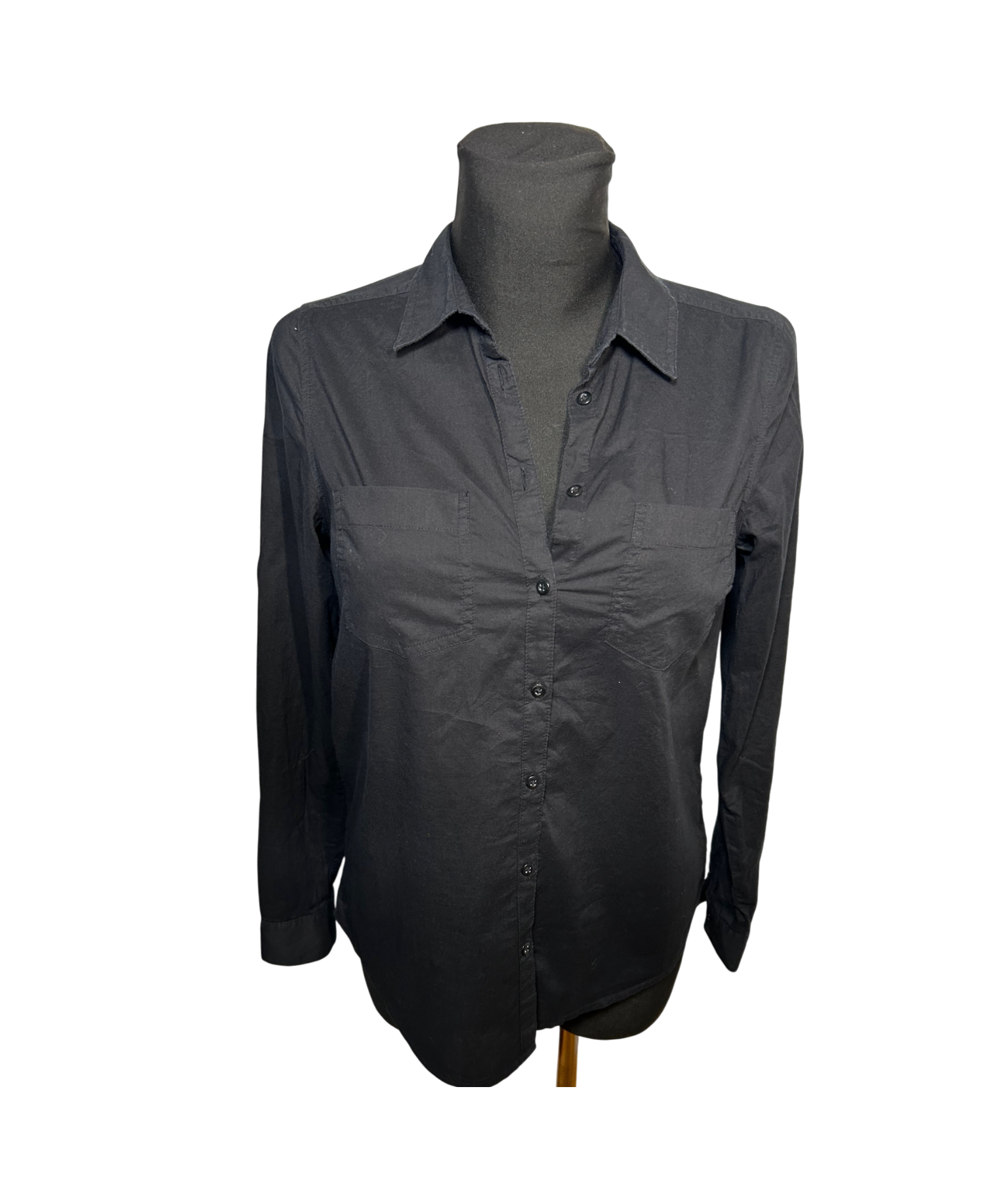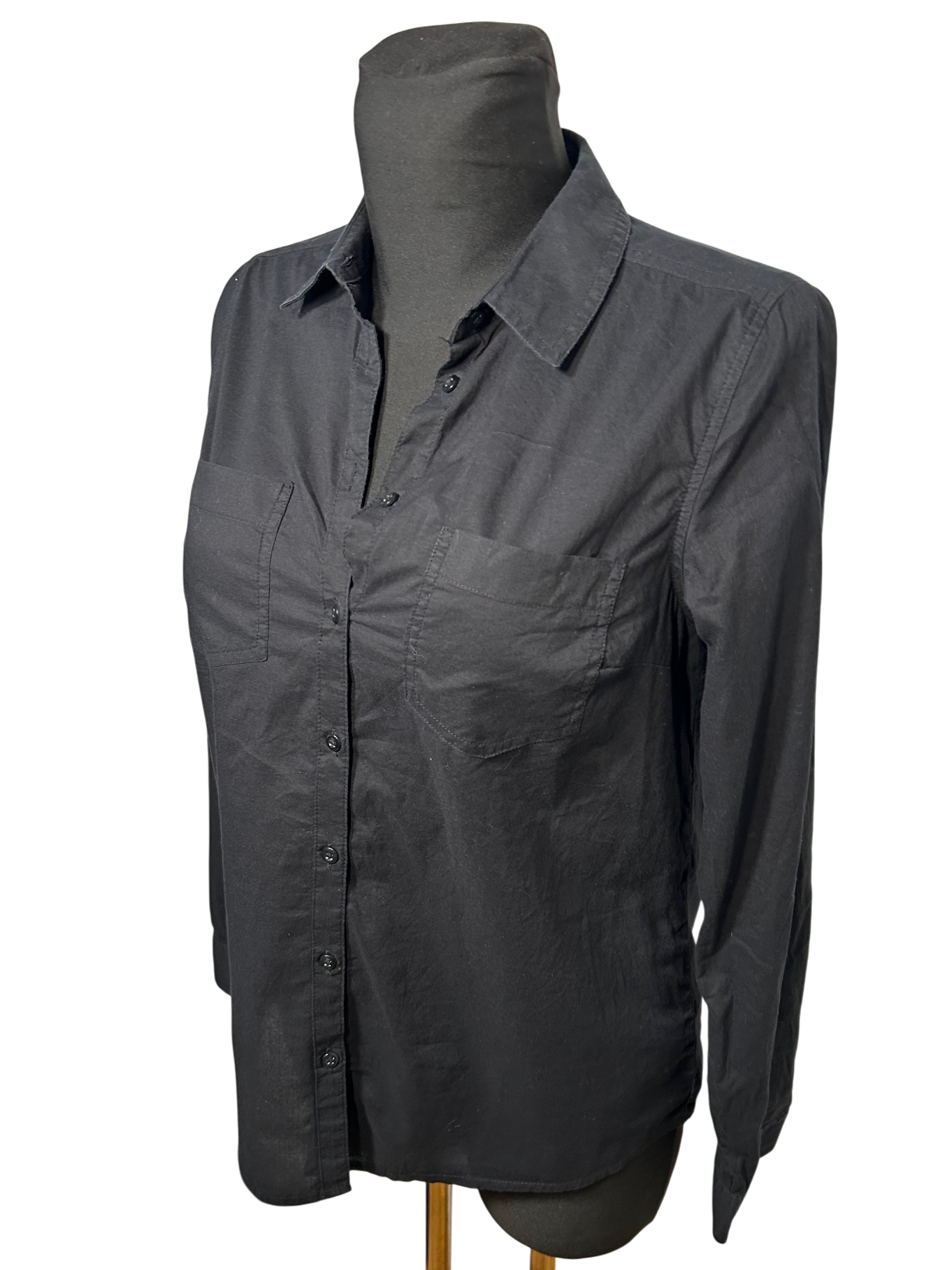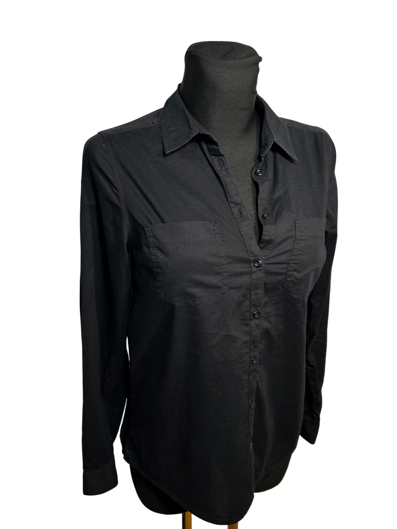 Yessica Damen Bluse Hemdbluse Gr 36 Schwarz Baumwolle Langarm Basic Elegant