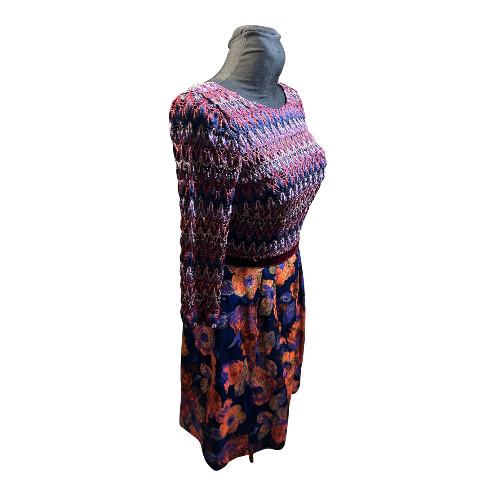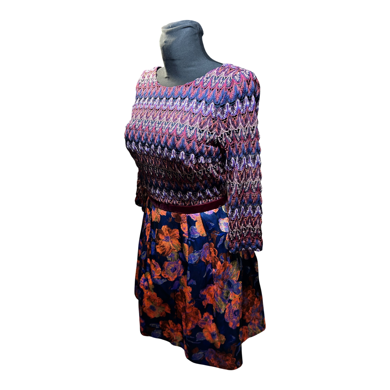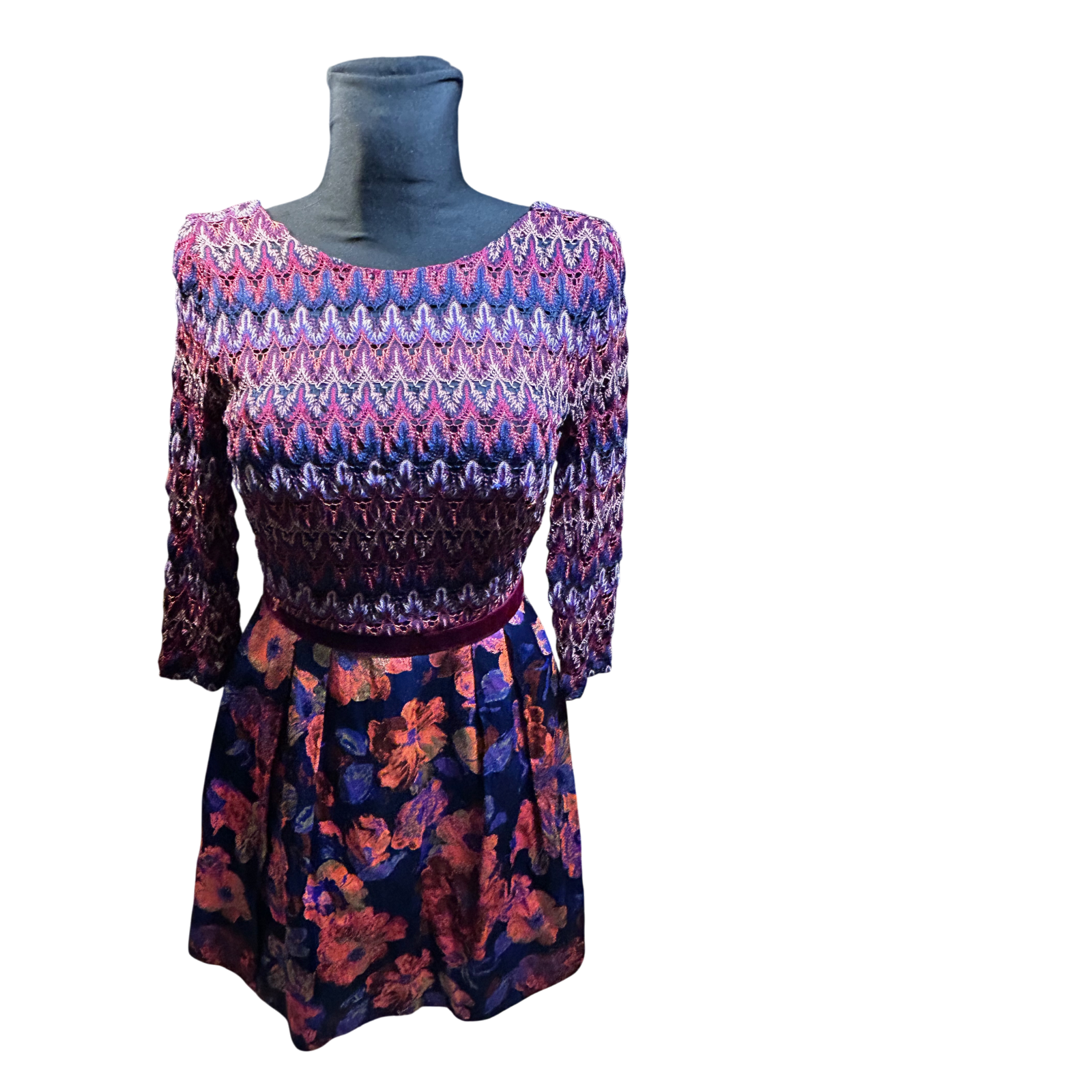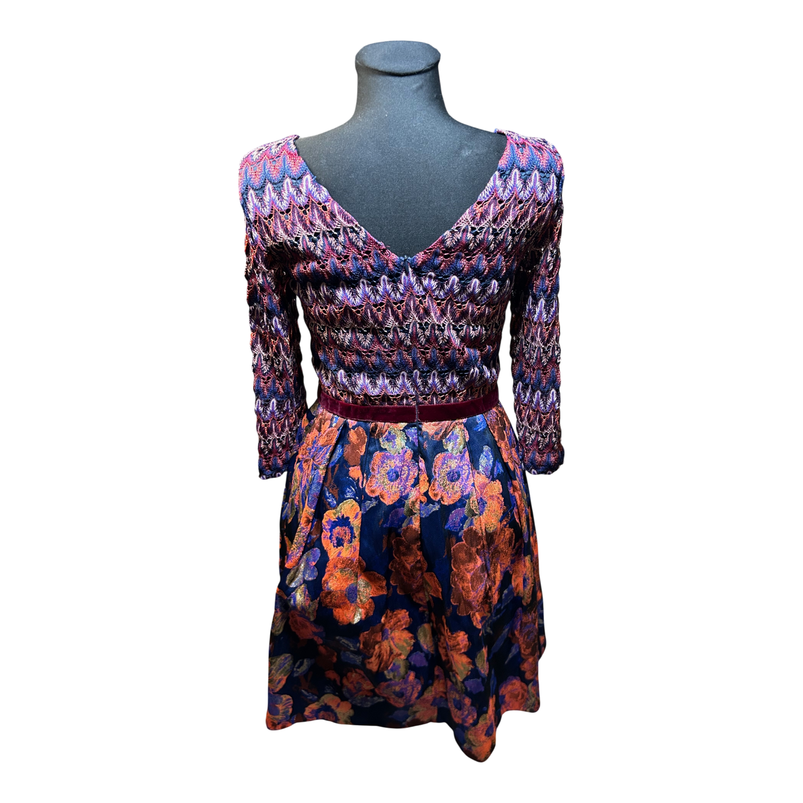 Dieses elegante Kleid überzeugt durch sein ausdrucksstarkes Design mit fein gemustertem Oberteil und floral gestaltetem Rockteil, das dem Modell eine feminine und stilvolle Ausstrahlung verleiht 🌸