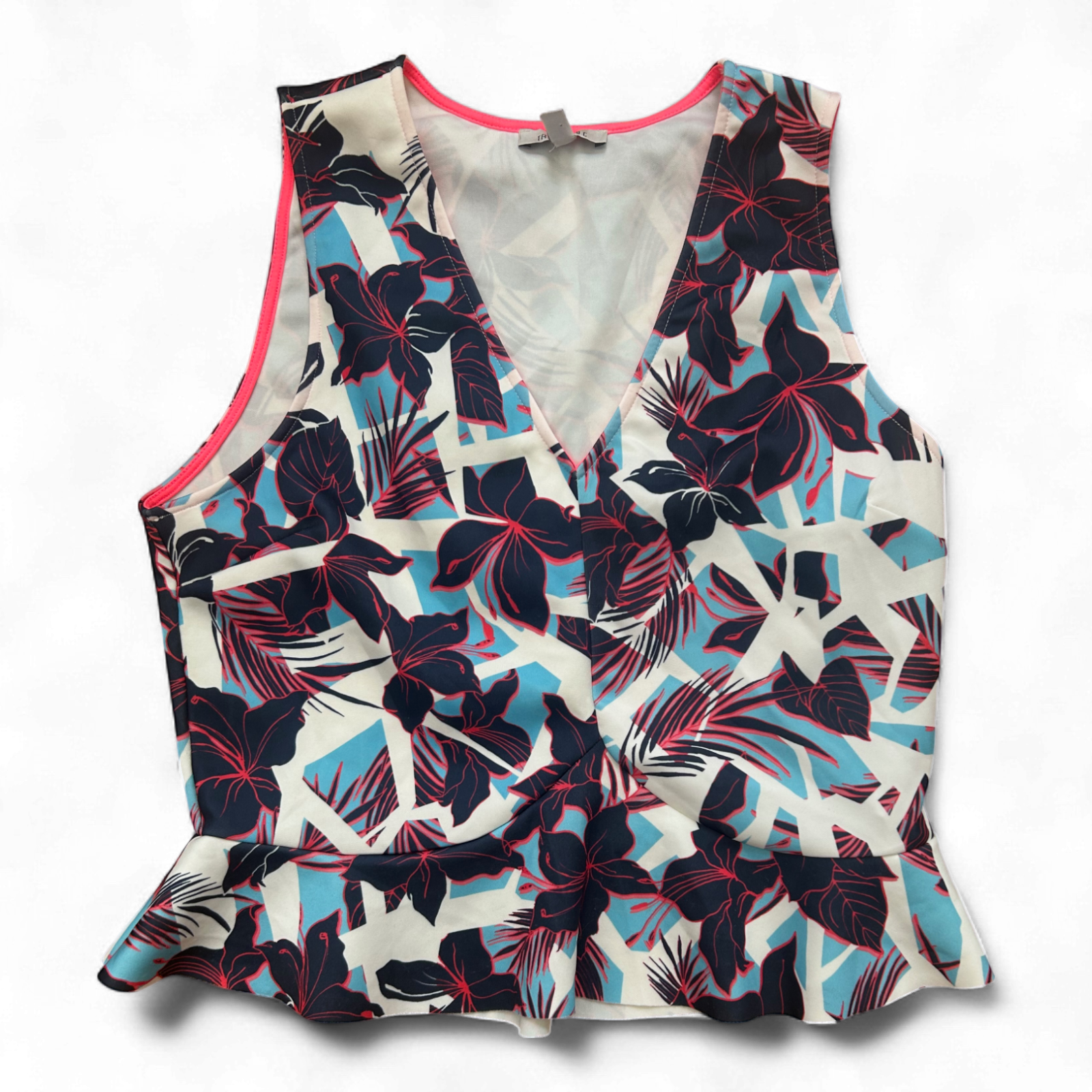 Zara Damen Top L Blumenprint Sommer Oberteil ärmellos weiß blau rot Muster