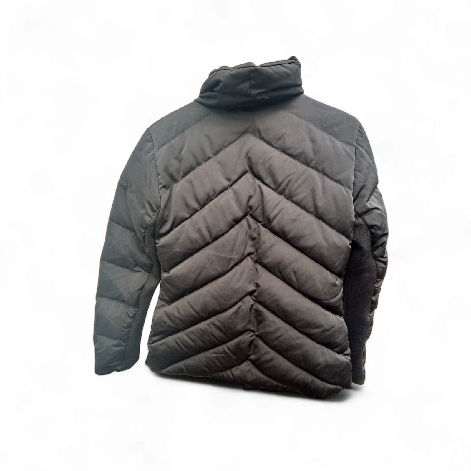 Diese schwarze Daunenjacke von Zara Woman in Größe XS ist ein stilvolles Highlight für kalte Tage. Der taillierte Schnitt und das dezente Chevron-Steppmuster verleihen ihr eine moderne Silhouette mit elegantem Charakter. Die Jacke hat eine Brustweite von ca. 38 cm, eine Ärmellänge von ca. 63 cm und eine Gesamtlänge von ca. 68 cm. Der asymmetrische Reißverschluss und der hohe Kragen sorgen für einen urbanen Look. Die Füllung besteht aus echten Daunen – ideal für Herbst und Winter. Sie ist wunderbar leicht, gleichzeitig warm und angenehm zu tragen. Perfekt für alle, die eine hochwertige Jacke für kühle Tage suchen.