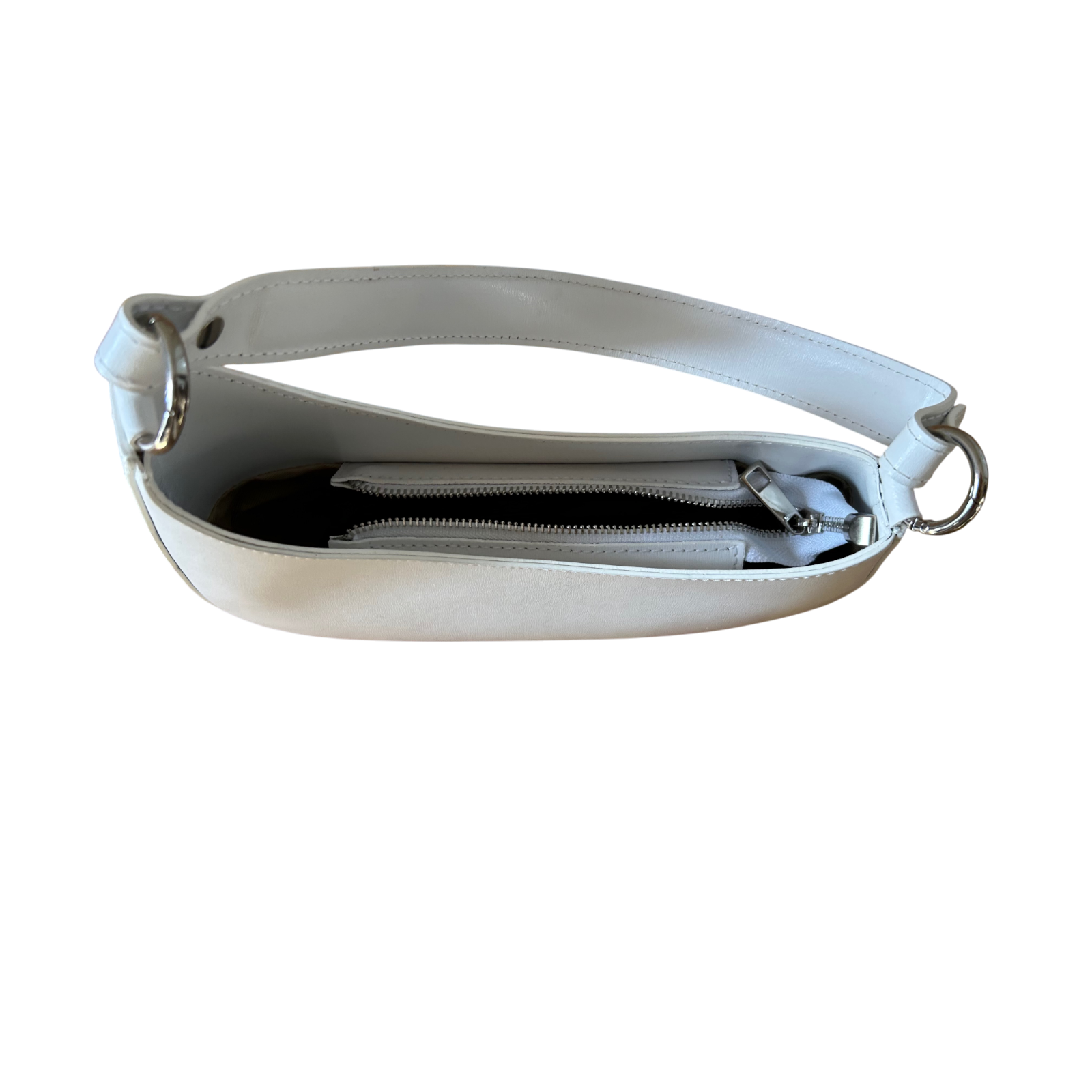 Diese elegante Echtledertasche von Zeen Italy zeigt sich in einem klaren, modernen Weiß und hat eine kompakte, geschwungene Hobo-Form 🤍.